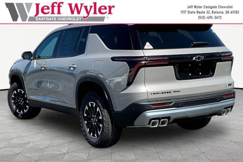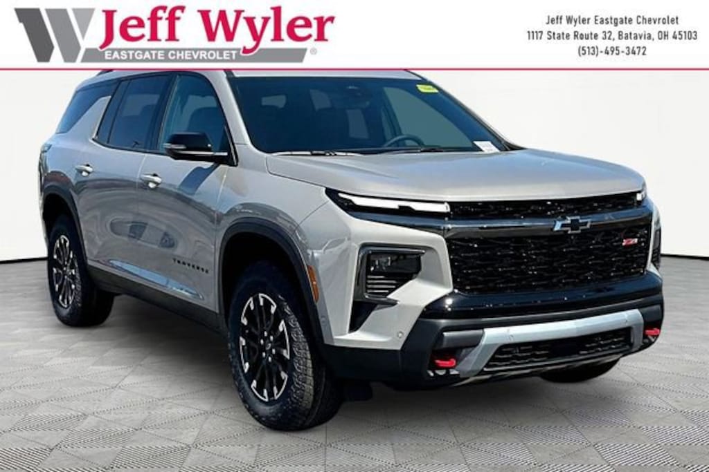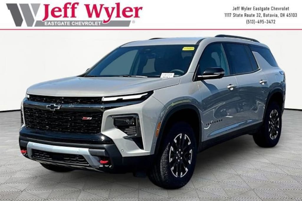 Sandstone Gray 2026 Chevrolet Traverse Z71 2.5L DOHC AWD 8-Speed Automatic 20/24 City/Highway MPG Jeff Wyler Eastgate Auto Mall is pleased to offer this beautiful 2026 Chevrolet Traverse Z71 in Sandstone Gray. Well equipped with: Driver Confidence Package (HD Surround Vision, Key Card, Power Outlet, Rear Camera Mirror, Rear Pedestrian Alert, and Traffic Sign Recognition), Enhanced Driving Package (Active Noise Cancellation, Bose Premium 12-Speaker Audio System Feature, Driver Attention Assist, Enhanced Automatic Parking Assist, and Super Cruise), Floor Liner Package (1st and 2nd Row All-Weather Floor Liners, 3rd Row All-Weather Floor Liner, and Integrated Cargo Liner), Preferred Equipment Group 2Z7, 3rd row seats: split-bench, 4-Way Manual Front Passenger Seat Adjuster, 4-Wheel Disc Brakes, 6 Speakers, 6-Speaker Audio System Feature, 8-Way Power Driver Seat Adjuster, ABS brakes, Air Conditioning, Alloy wheels, AM/FM radio: SiriusXM with 360L, Apple CarPlay/Android Auto, Auto High-beam Headlights, Automatic temperature control, Brake assist, Child-Seat-Sensing Airbag, Compass, Delay-off headlights, Driver door bin, Driver vanity mirror, Dual front impact airbags, Dual front side impact airbags, Electronic Stability Control, Emergency communication system: OnStar, Evotex Seat Trim, Four wheel independent suspension, Front anti-roll bar, Front Bucket Seats, Front Center Armrest, Front dual zone A/C, Front reading lights, Fully automatic headlights, Heated door mirrors, Heated Driver and Front Passenger Seats, Heated front seats, Heated steering wheel, Illuminated entry, Low tire pressure warning, Navigation System, Occupant sensing airbag, Outside temperature display, Overhead airbag, Overhead console, Panic alarm, Passenger door bin, Passenger vanity mirror, Power door mirrors, Power driver seat, Power Liftgate, Power steering, Power windows, Radio data system, Radio: : Audio System w/17.7 Diagonal Display, Rear air conditioning, Rear anti-roll bar, Rear reading lights, Rear window defroster, Rear window wiper, Remote keyless entry, Security system, SiriusXM with 360L Trial Subscription, Speed control, Speed-sensing steering, Spoiler, Steering wheel mounted audio controls, Tachometer, Telescoping steering wheel, Tilt steering wheel, Traction control, Trip computer, Turn signal indicator mirrors, Variably intermittent wipers, Voltmeter, Wheels: : 18 High Gloss Black Painted Aluminum, and Z71 Black Nameplate Kit (LPO)