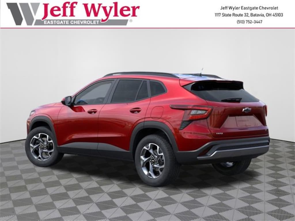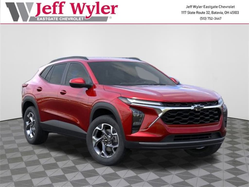 Apex Red 2026 Chevrolet Trax LT ECOTEC 1.2L Turbo FWD 6-Speed Automatic 28/32 City/Highway MPG Jeff Wyler Eastgate Auto Mall is proud to offer this good-looking 2026 Chevrolet Trax LT in Apex Red. Well equipped with: Driver Confidence Package (Adaptive Cruise Control, Lane Change Alert w/Side Blind Zone Alert, Rear Cross Traffic Alert, and Rear Park Assist), LT Convenience Package (Front Doors Keyless Open, Heated Driver & Front Passenger Seats, Heated Power-Adjustable Outside Mirrors, Heated Steering Wheel, and Wrapped Steering Wheel), 2-Way Adjustable Front Head Restraints, 3.50 Final Drive Axle Ratio, 4-Way Manual Front Passenger Seat Adjuster, 4-Wheel Disc Brakes, 6 Speakers, 6-Speaker Audio System Feature, 6-Way Manual Driver Seat Adjuster, ABS brakes, Air Conditioning, Alloy wheels, AM/FM radio: SiriusXM, Auto High-beam Headlights, Automatic temperature control, Brake assist, Bumpers: body-color, Cloth/Evotex Seat Trim, Compass, Delay-off headlights, Driver door bin, Driver vanity mirror, Dual front impact airbags, Dual front side impact airbags, Electronic Stability Control, Emergency communication system: OnStar One Essentials, Exterior Parking Camera Rear, Front & Rear Black Bowtie Emblems (LPO), Front & Rear Jet Black All-Weather Floor Liners (LPO), Front anti-roll bar, Front Bucket Seats, Front Center Armrest, Front reading lights, Front wheel independent suspension, Fully automatic headlights, Illuminated entry, Jet Black Cargo Liner (LPO), Low tire pressure warning, Occupant sensing airbag, Outside temperature display, Overhead airbag, Overhead console, Panic alarm, Passenger door bin, Passenger vanity mirror, Power door mirrors, Power steering, Power windows, Premium audio system: Chevrolet Infotainment 3, Radio data system, Radio: AM/FM Stereo Audio System, Rear window defroster, Rear window wiper, Remote keyless entry, Security system, SiriusXM Trial Subscription, Speed control, Split folding rear seat, Spoiler, Steering wheel mounted audio controls, Tachometer, Telescoping steering wheel, Tilt steering wheel, Traction control, Trip computer, Variably intermittent wipers, Wheels: 17 Gray-Painted Machined Aluminum, and Wireless Apple CarPlay/Wireless Android Auto. 28/32 City/Highway MPG