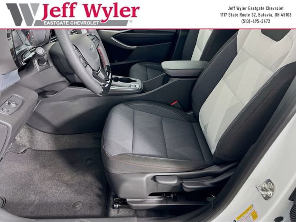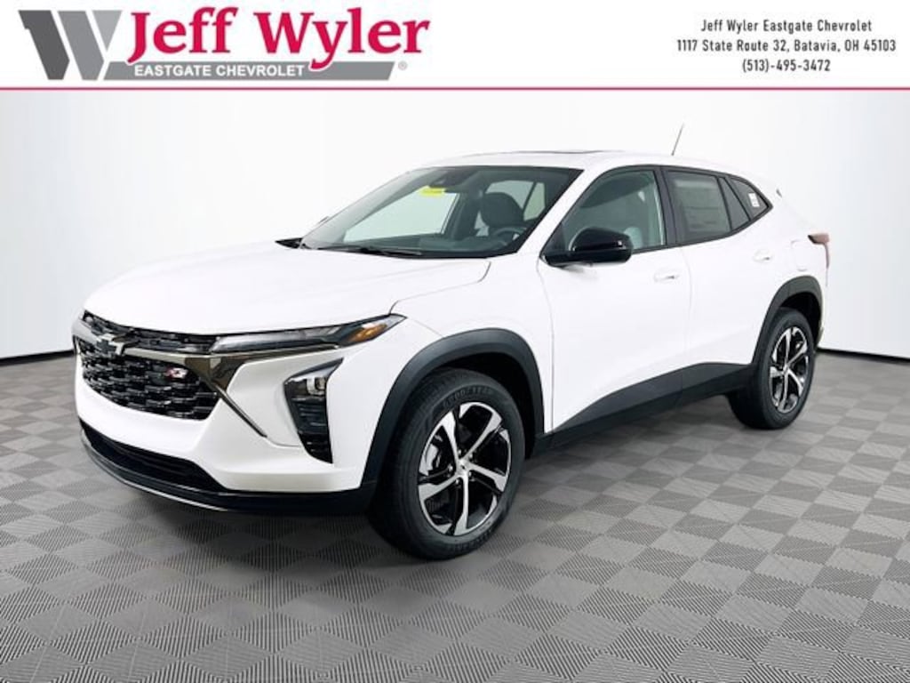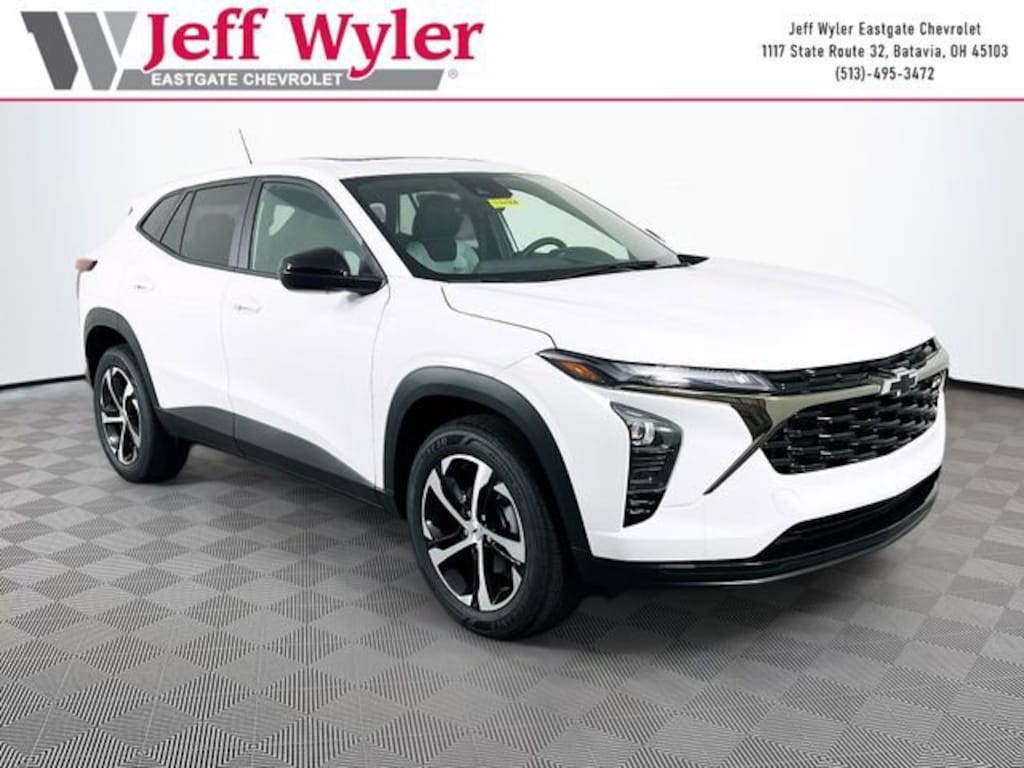 Summit White 2026 Chevrolet Trax 1RS ECOTEC 1.2L Turbo FWD 6-Speed Automatic 28/32 City/Highway MPG Jeff Wyler Eastgate Auto Mall is pleased to offer this superb-looking 2026 Chevrolet Trax 1RS in Summit White. Well equipped with: Driver Confidence Package (Lane Change Alert with Side Blind Zone Alert, Rear Cross Traffic Alert, and Rear Park Assist), Preferred Equipment Group 1RS, Sunroof Package (Power Sliding Glass Sunroof with Manual Shade), 2-Way Adjustable Front Head Restraints, 3.50 Final Drive Axle Ratio, 4 Speakers, 4-Speaker Audio System Feature, 4-Way Manual Front Passenger Seat Adjuster, 4-Wheel Disc Brakes, 6-Way Manual Driver Seat Adjuster, ABS brakes, Air Conditioning, Alloy wheels, AM/FM radio: SiriusXM, Auto High-beam Headlights, Brake assist, Bumpers: body-color, Cloth Seat Trim, Compass, Delay-off headlights, Driver door bin, Driver vanity mirror, Dual front impact airbags, Dual front side impact airbags, Electronic Stability Control, Emergency communication system: OnStar One Essentials, Exterior Parking Camera Rear, Front anti-roll bar, Front Bucket Seats, Front Center Armrest, Front reading lights, Front wheel independent suspension, Fully automatic headlights, Heated door mirrors, Heated Driver and Front Passenger Seats, Heated front seats, Heated steering wheel, Illuminated entry, Leather steering wheel, Low tire pressure warning, Occupant sensing airbag, Outside temperature display, Overhead airbag, Overhead console, Panic alarm, Passenger door bin, Passenger vanity mirror, Power door mirrors, Power steering, Power windows, Premium audio system: Chevrolet Infotainment 3, Radio data system, Radio: Chevrolet Infotainment 3 System with AM/FM, Rear window defroster, Rear window wiper, Remote keyless entry, Security system, SiriusXM Trial Subscription, Speed control, Split folding rear seat, Spoiler, Sport steering wheel, Steering wheel mounted audio controls, Tachometer, Telescoping steering wheel, Tilt steering wheel, Traction control, Trip computer, Variably intermittent wipers, Wheels: 18 Black-Painted Machined Aluminum, and Wireless Apple CarPlay/Wireless Android Auto. 28/32 City/Highway MPG