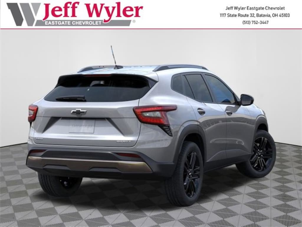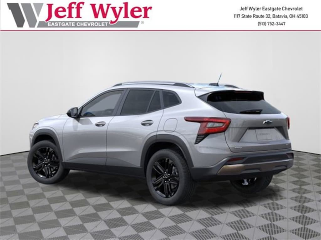 Sterling Gray Metallic 2026 Chevrolet Trax ACTIV ECOTEC 1.2L Turbo FWD 6-Speed Automatic 28/32 City/Highway MPG Jeff Wyler Eastgate Auto Mall is delighted to offer this wonderful-looking 2026 Chevrolet Trax ACTIV in Sterling Gray Metallic. Well equipped with: Driver Confidence Package (Adaptive Cruise Control, Lane Change Alert w/Side Blind Zone Alert, Rear Cross Traffic Alert, and Rear Park Assist), Preferred Equipment Group 1SA, 2-Way Adjustable Front Head Restraints, 2-Way Power Driver Lumbar Seat Adjuster, 3.50 Final Drive Axle Ratio, 4-Way Manual Front Passenger Seat Adjuster, 4-Wheel Disc Brakes, 6 Speakers, 6-Speaker Audio System Feature, 8-Way Power Driver Seat Adjuster, ABS brakes, Air Conditioning, Alloy wheels, AM/FM radio: SiriusXM, Auto High-beam Headlights, Automatic temperature control, Brake assist, Bumpers: body-color, Compass, Delay-off headlights, Driver door bin, Driver vanity mirror, Dual front impact airbags, Dual front side impact airbags, Electronic Stability Control, Emergency communication system: OnStar One Essentials, Evotex Seat Trim, Exterior Parking Camera Rear, Front & Rear Jet Black All-Weather Floor Liners (LPO), Front anti-roll bar, Front Bucket Seats, Front Center Armrest, Front reading lights, Front wheel independent suspension, Fully automatic headlights, Heated door mirrors, Heated Driver & Front Passenger Seats, Heated front seats, Heated steering wheel, Illuminated entry, Leather steering wheel, Low tire pressure warning, Occupant sensing airbag, Outside temperature display, Overhead airbag, Overhead console, Panic alarm, Passenger door bin, Passenger vanity mirror, Power door mirrors, Power driver seat, Power steering, Power windows, Premium audio system: Chevrolet Infotainment 3, Radio data system, Radio: AM/FM Stereo Audio System, Rear window defroster, Rear window wiper, Remote keyless entry, Security system, SiriusXM Trial Subscription, Speed control, Split folding rear seat, Spoiler, Steering wheel mounted audio controls, Tachometer, Telescoping steering wheel, Tilt steering wheel, Traction control, Trip computer, Variably intermittent wipers, Wheels: 18 Black-Painted Aluminum, and Wireless Apple CarPlay/Wireless Android Auto. 28/32 City/Highway MPG