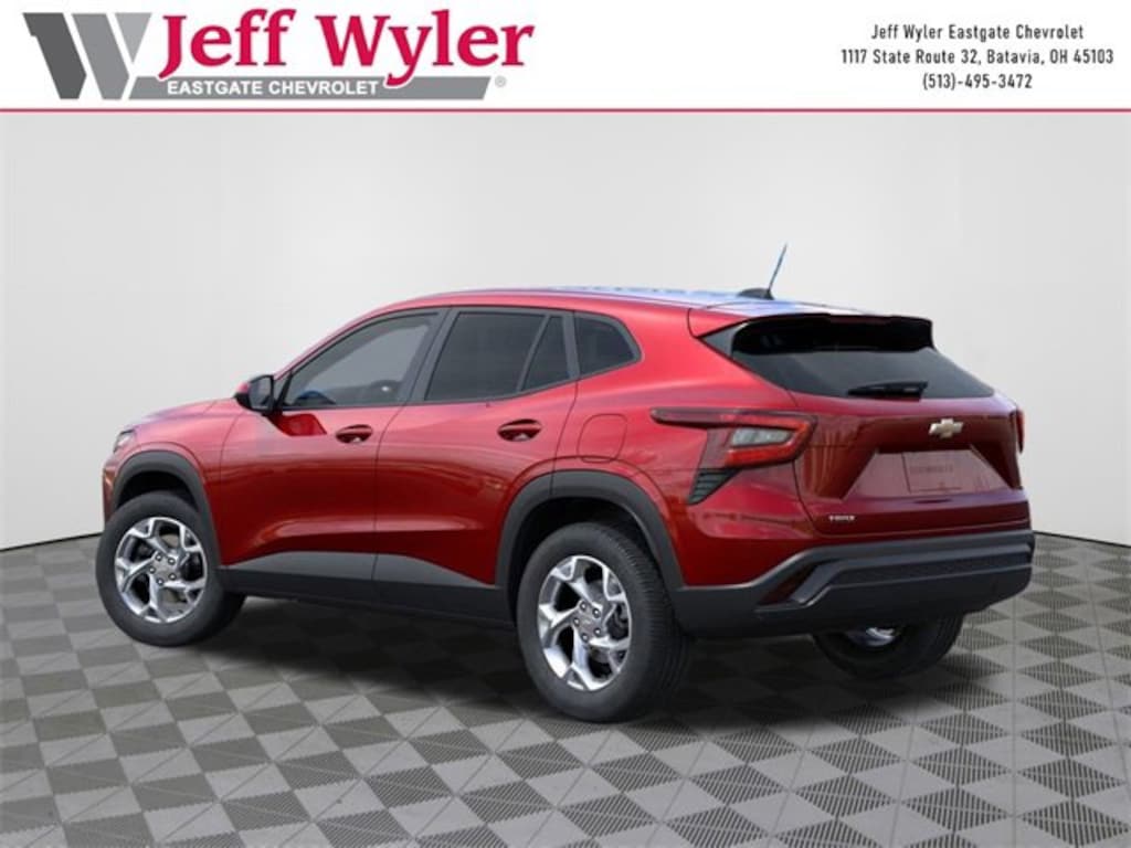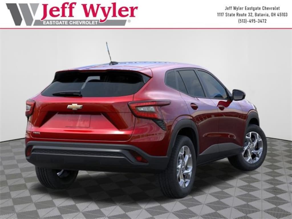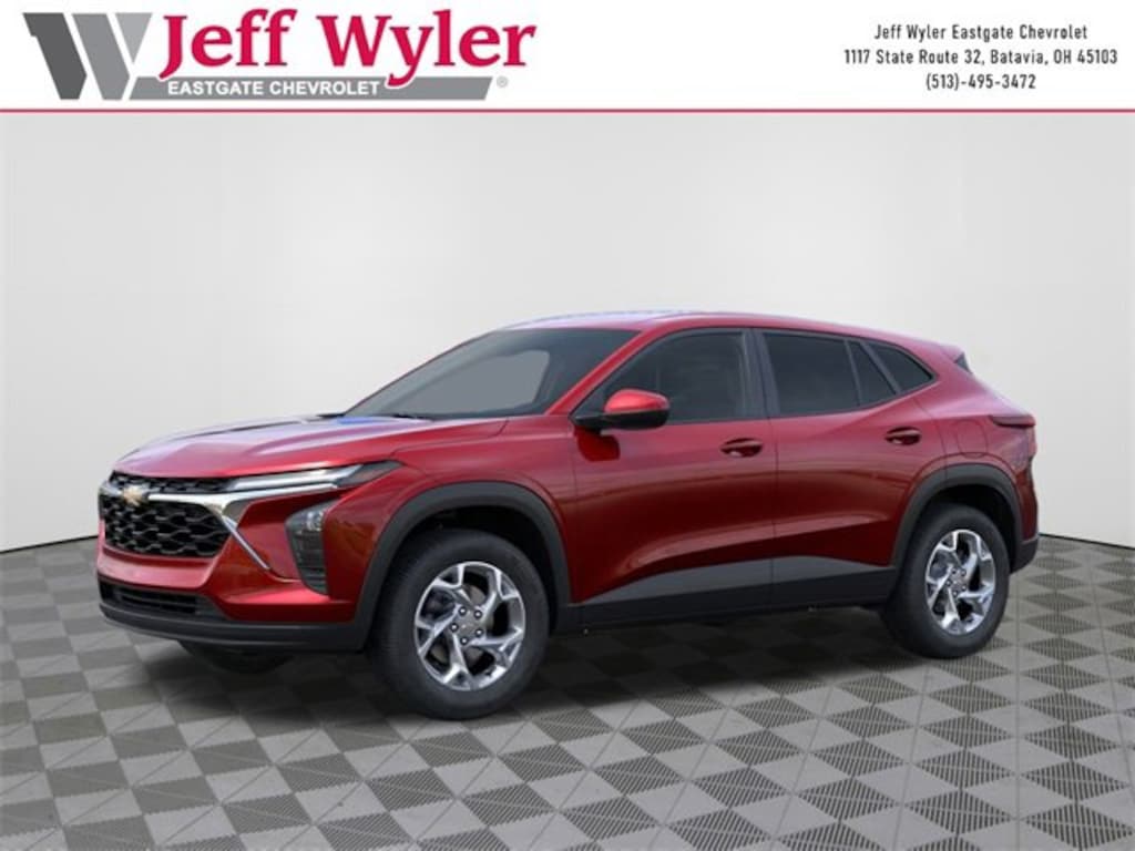 Apex Red 2026 Chevrolet Trax LS ECOTEC 1.2L Turbo FWD 6-Speed Automatic 28/32 City/Highway MPG Jeff Wyler Eastgate Auto Mall is honored to offer this charming 2026 Chevrolet Trax LS in Apex Red. Well equipped with: Driver Confidence Package (Lane Change Alert with Side Blind Zone Alert, Rear Cross Traffic Alert, and Rear Park Assist), LS Convenience Package (Body-Color Painted Mirror Caps, Carpeted Rear Floor Mats, Heated Driver and Front Passenger Seats, Heated Power-Adjustable Outside Mirrors, Remote Start, and Wheels: 17 Silver Painted Aluminum), Preferred Equipment Group 1LS, 2-Way Adjustable Front Head Restraints, 3.50 Final Drive Axle Ratio, 4 Speakers, 4-Speaker Audio System Feature, 4-Way Manual Front Passenger Seat Adjuster, 4-Wheel Disc Brakes, 6-Way Manual Driver Seat Adjuster, ABS brakes, Air Conditioning, AM/FM radio: SiriusXM, Auto High-beam Headlights, Brake assist, Bumpers: body-color, Cloth Seat Trim, Compass, Delay-off headlights, Driver door bin, Driver vanity mirror, Dual front impact airbags, Dual front side impact airbags, Electronic Stability Control, Emergency communication system: OnStar One Essentials, Exterior Parking Camera Rear, Front anti-roll bar, Front Bucket Seats, Front Center Armrest, Front reading lights, Front wheel independent suspension, Fully automatic headlights, Illuminated entry, Low tire pressure warning, Occupant sensing airbag, Outside temperature display, Overhead airbag, Overhead console, Panic alarm, Passenger door bin, Passenger vanity mirror, Power door mirrors, Power steering, Power windows, Premium audio system: Chevrolet Infotainment 3, Radio data system, Radio: Chevrolet Infotainment 3 System with AM/FM, Rear window defroster, Rear window wiper, Remote keyless entry, Security system, SiriusXM Trial Subscription, Speed control, Split folding rear seat, Spoiler, Steering wheel mounted audio controls, Tachometer, Telescoping steering wheel, Tilt steering wheel, Traction control, Trip computer, Variably intermittent wipers, Wheels: 17 Steel with Covers, and Wireless Apple CarPlay/Wireless Android Auto. 28/32 City/Highway MPG