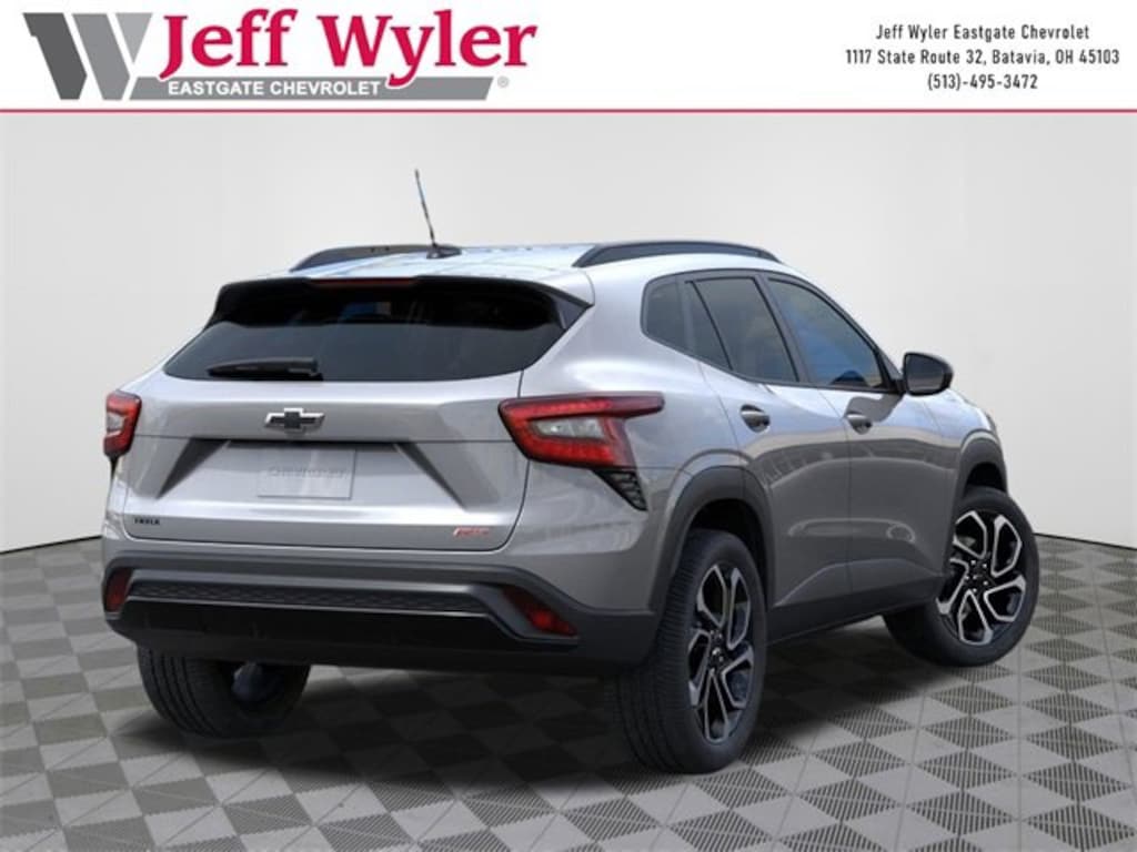 Sterling Gray Metallic 2026 Chevrolet Trax 2RS ECOTEC 1.2L Turbo FWD 6-Speed Automatic 28/32 City/Highway MPG Jeff Wyler Eastgate Auto Mall is pumped up to offer this good-looking 2026 Chevrolet Trax 2RS in Sterling Gray Metallic. Well equipped with: Driver Confidence Package (Adaptive Cruise Control, Lane Change Alert with Side Blind Zone Alert, Rear Cross Traffic Alert, and Rear Park Assist), Preferred Equipment Group 2RS, Sunroof Package (Power Sliding Glass Sunroof with Manual Shade and Wireless Charging), 2-Way Adjustable Front Head Restraints, 2-Way Power Driver Lumbar Seat Adjuster, 3.50 Final Drive Axle Ratio, 4-Way Manual Front Passenger Seat Adjuster, 4-Wheel Disc Brakes, 6 Speakers, 6-Speaker Audio System Feature, 8-Way Power Driver Seat Adjuster, ABS brakes, Air Conditioning, Alloy wheels, AM/FM radio: SiriusXM, Auto High-beam Headlights, Automatic temperature control, Brake assist, Bumpers: body-color, Compass, Delay-off headlights, Driver door bin, Driver vanity mirror, Dual front impact airbags, Dual front side impact airbags, Electronic Stability Control, Emergency communication system: OnStar One Essentials, Evotex Seat Trim, Exterior Parking Camera Rear, Front anti-roll bar, Front Bucket Seats, Front Center Armrest, Front reading lights, Front wheel independent suspension, Fully automatic headlights, Heated door mirrors, Heated Driver and Front Passenger Seats, Heated front seats, Heated steering wheel, Illuminated entry, Leather steering wheel, Low tire pressure warning, Occupant sensing airbag, Outside temperature display, Overhead airbag, Overhead console, Panic alarm, Passenger door bin, Passenger vanity mirror, Power door mirrors, Power driver seat, Power steering, Power windows, Premium audio system: Chevrolet Infotainment 3, Radio data system, Radio: AM/FM Stereo Audio System, Rear window defroster, Rear window wiper, Remote keyless entry, Security system, SiriusXM Trial Subscription, Speed control, Split folding rear seat, Spoiler, Sport steering wheel, Steering wheel mounted audio controls, Tachometer, Telescoping steering wheel, Tilt steering wheel, Traction control, Trip computer, Variably intermittent wipers, Wheels: 19 Black-Painted Machined Aluminum, and Wireless Apple CarPlay/Wireless Android Auto. 28/32 City/Highway MPG