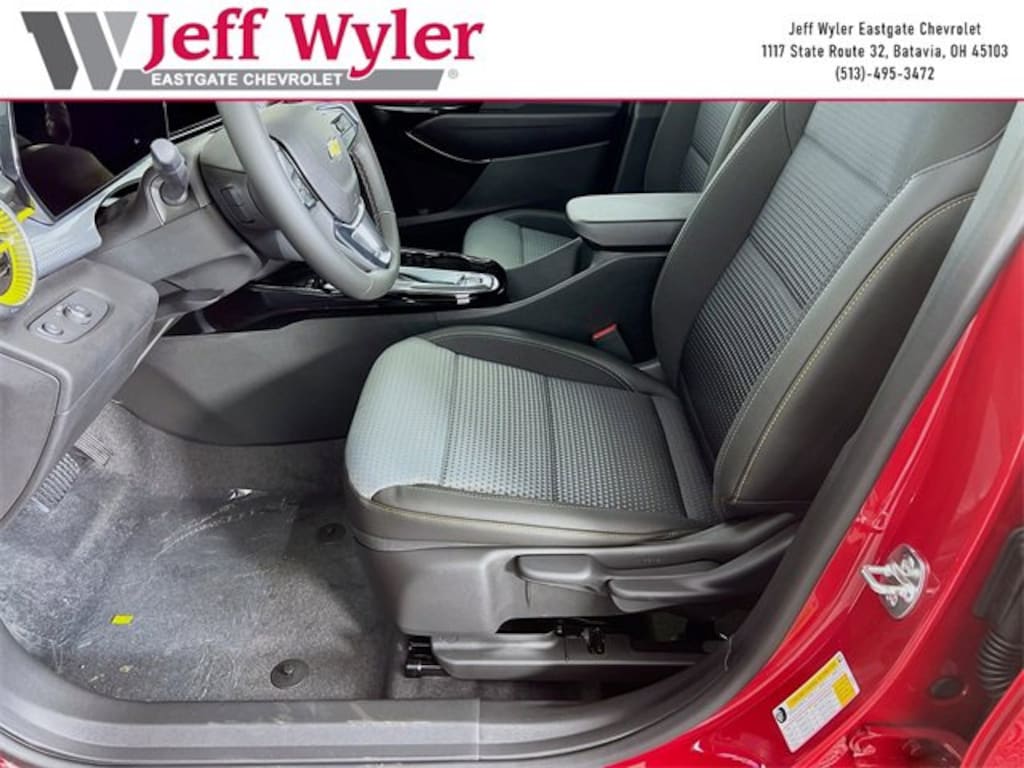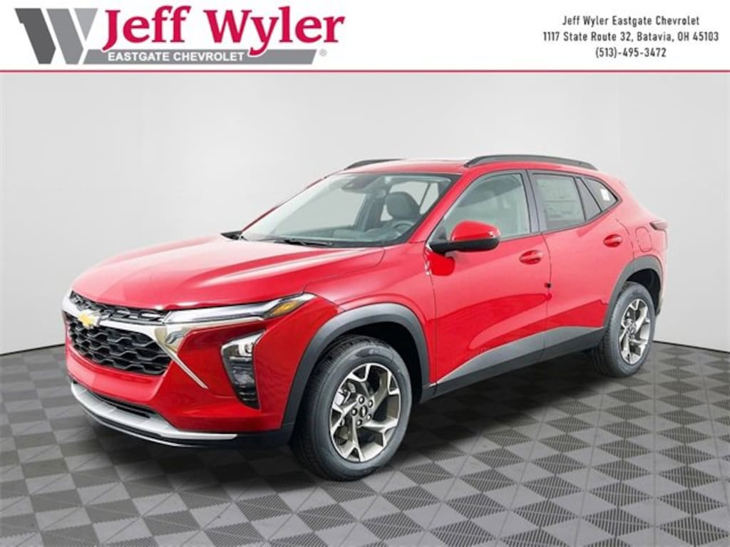 Apex Red 2026 Chevrolet Trax LT ECOTEC 1.2L Turbo FWD 6-Speed Automatic 28/32 City/Highway MPG Jeff Wyler Eastgate Auto Mall is pumped up to offer this outstanding-looking 2026 Chevrolet Trax LT in Apex Red. Well equipped with: LT Convenience Package (Front Doors Keyless Open, Heated Driver and Front Passenger Seats, Heated Power-Adjustable Outside Mirrors, Heated Steering Wheel, and Wrapped Steering Wheel), Preferred Equipment Group 1LT, Sunroof Package (Power Sliding Glass Sunroof with Manual Shade and Wireless Charging), 2-Way Adjustable Front Head Restraints, 3.50 Final Drive Axle Ratio, 4-Way Manual Front Passenger Seat Adjuster, 4-Wheel Disc Brakes, 6 Speakers, 6-Speaker Audio System Feature, 6-Way Manual Driver Seat Adjuster, ABS brakes, Air Conditioning, Alloy wheels, AM/FM radio: SiriusXM, Auto High-beam Headlights, Automatic temperature control, Brake assist, Bumpers: body-color, Cloth/Evotex Seat Trim, Compass, Delay-off headlights, Driver door bin, Driver vanity mirror, Dual front impact airbags, Dual front side impact airbags, Electronic Stability Control, Emergency communication system: OnStar One Essentials, Exterior Parking Camera Rear, Front anti-roll bar, Front Bucket Seats, Front Center Armrest, Front reading lights, Front wheel independent suspension, Fully automatic headlights, Illuminated entry, Low tire pressure warning, Occupant sensing airbag, Outside temperature display, Overhead airbag, Overhead console, Panic alarm, Passenger door bin, Passenger vanity mirror, Power door mirrors, Power steering, Power windows, Premium audio system: Chevrolet Infotainment 3, Radio data system, Radio: AM/FM Stereo Audio System, Rear window defroster, Rear window wiper, Remote keyless entry, Security system, SiriusXM Trial Subscription, Speed control, Split folding rear seat, Spoiler, Steering wheel mounted audio controls, Tachometer, Telescoping steering wheel, Tilt steering wheel, Traction control, Trip computer, Variably intermittent wipers, Wheels: 17 Inch Gray-Painted Machined Aluminum Alloy, and Wireless Apple CarPlay/Wireless Android Auto. 28/32 City/Highway MPG Price includes: $500 - Chevrolet Consumer Cash Program. Exp. 03/31/2026