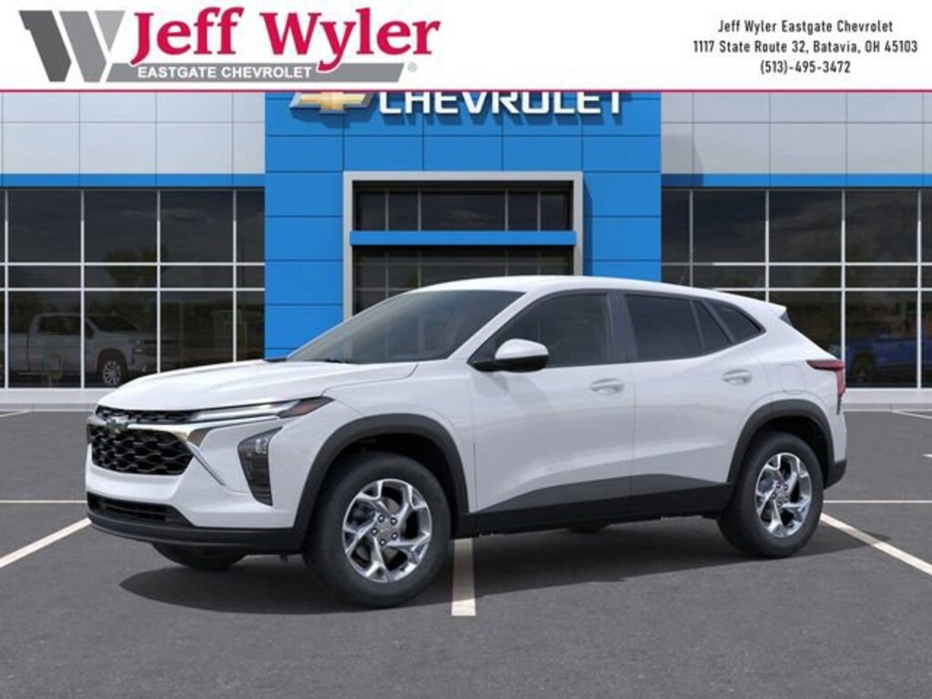 Summit White 2026 Chevrolet Trax LS ECOTEC 1.2L Turbo FWD 6-Speed Automatic 28/32 City/Highway MPG Jeff Wyler Eastgate Auto Mall is very proud to offer this handsome 2026 Chevrolet Trax LS in Summit White. Well equipped with: Blackout Package (Black Nameplate, Front and Rear Black Bowtie Emblems, and Silver Wheel Center Caps with Black Bowtie), Driver Confidence Package (Lane Change Alert with Side Blind Zone Alert, Rear Cross Traffic Alert, and Rear Park Assist), LS Convenience Package (Body-Color Painted Mirror Caps, Carpeted Rear Floor Mats, Heated Driver and Front Passenger Seats, Heated Power-Adjustable Outside Mirrors, Remote Start, and Wheels: 17 Silver Painted Aluminum), Preferred Equipment Group 1LS, 2-Way Adjustable Front Head Restraints, 3.50 Final Drive Axle Ratio, 4 Speakers, 4-Speaker Audio System Feature, 4-Way Manual Front Passenger Seat Adjuster, 4-Wheel Disc Brakes, 6-Way Manual Driver Seat Adjuster, ABS brakes, Air Conditioning, AM/FM radio: SiriusXM, Auto High-beam Headlights, Brake assist, Bumpers: body-color, Cloth Seat Trim, Compass, Delay-off headlights, Driver door bin, Driver vanity mirror, Dual front impact airbags, Dual front side impact airbags, Electronic Stability Control, Emergency communication system: OnStar One Essentials, Exterior Parking Camera Rear, Front anti-roll bar, Front Bucket Seats, Front Center Armrest, Front reading lights, Front wheel independent suspension, Fully automatic headlights, Illuminated entry, Low tire pressure warning, Occupant sensing airbag, Outside temperature display, Overhead airbag, Overhead console, Panic alarm, Passenger door bin, Passenger vanity mirror, Power door mirrors, Power steering, Power windows, Premium audio system: Chevrolet Infotainment 3, Radio data system, Radio: Chevrolet Infotainment 3 System with AM/FM, Rear window defroster, Rear window wiper, Remote keyless entry, Security system, SiriusXM Trial Subscription, Speed control, Split folding rear seat, Spoiler, Steering wheel mounted audio controls, Tachometer, Telescoping steering wheel, Tilt steering wheel, Traction control, Trip computer, Variably intermittent wipers, Wheels: 17 Steel with Covers, and Wireless Apple CarPlay/Wireless Android Auto. 28/32 City/Highway MPG