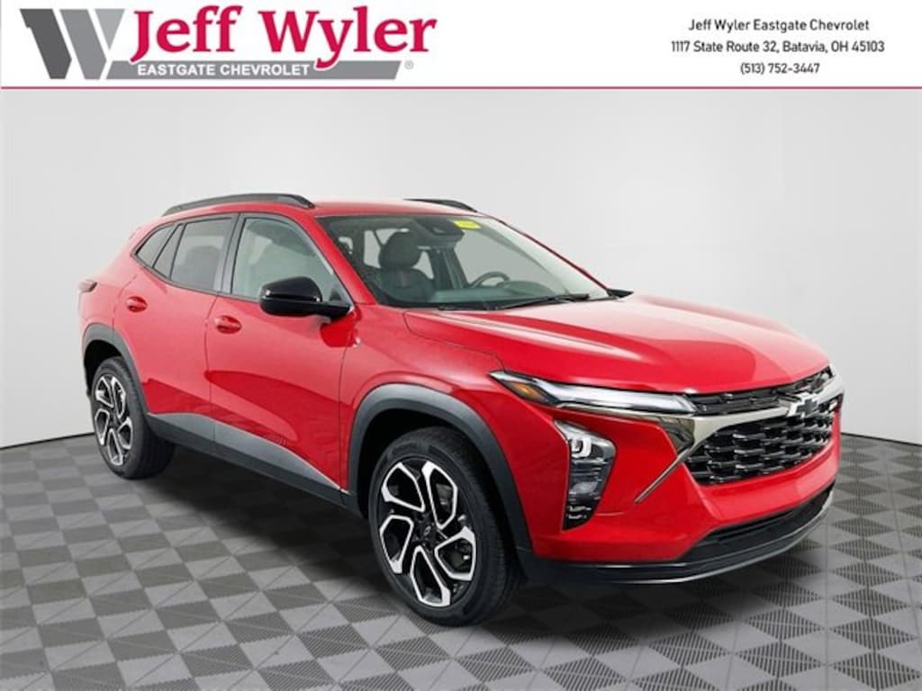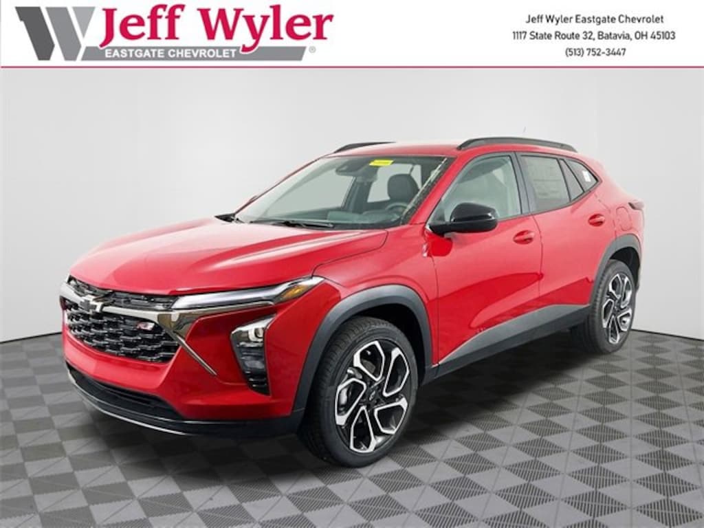 Apex Red 2026 Chevrolet Trax 2RS ECOTEC 1.2L Turbo FWD 6-Speed Automatic 28/32 City/Highway MPG Jeff Wyler Eastgate Auto Mall is honored to offer this great-looking 2026 Chevrolet Trax 2RS in Apex Red. Well equipped with: Preferred Equipment Group 2RS, 2-Way Adjustable Front Head Restraints, 2-Way Power Driver Lumbar Seat Adjuster, 3.50 Final Drive Axle Ratio, 4-Way Manual Front Passenger Seat Adjuster, 4-Wheel Disc Brakes, 6 Speakers, 6-Speaker Audio System Feature, 8-Way Power Driver Seat Adjuster, ABS brakes, Air Conditioning, Alloy wheels, AM/FM radio: SiriusXM, Auto High-beam Headlights, Automatic temperature control, Brake assist, Bumpers: body-color, Compass, Delay-off headlights, Driver door bin, Driver vanity mirror, Dual front impact airbags, Dual front side impact airbags, Electronic Stability Control, Emergency communication system: OnStar One Essentials, Evotex Seat Trim, Exterior Parking Camera Rear, Front & Rear Jet Black All-Weather Floor Mats (LPO), Front anti-roll bar, Front Bucket Seats, Front Center Armrest, Front reading lights, Front wheel independent suspension, Fully automatic headlights, Heated door mirrors, Heated Driver & Front Passenger Seats, Heated front seats, Heated steering wheel, Illuminated entry, Jet Black Cargo Liner (LPO), Leather steering wheel, Low tire pressure warning, Occupant sensing airbag, Outside temperature display, Overhead airbag, Overhead console, Panic alarm, Passenger door bin, Passenger vanity mirror, Power door mirrors, Power driver seat, Power steering, Power windows, Premium audio system: Chevrolet Infotainment 3, Radio data system, Radio: AM/FM Stereo Audio System, Rear window defroster, Rear window wiper, Remote keyless entry, Security system, SiriusXM Trial Subscription, Speed control, Split folding rear seat, Spoiler, Sport steering wheel, Steering wheel mounted audio controls, Tachometer, Telescoping steering wheel, Tilt steering wheel, Traction control, Trip computer, Variably intermittent wipers, Wheels: 19 Black-Painted Machined Aluminum, and Wireless Apple CarPlay/Wireless Android Auto. 28/32 City/Highway MPG