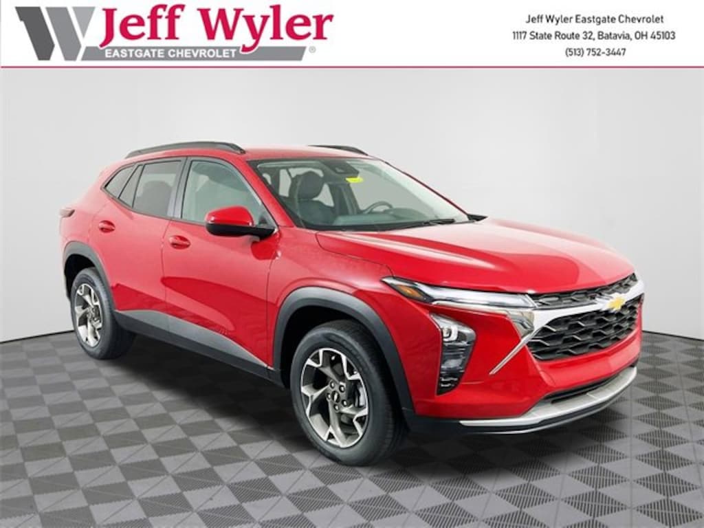 Apex Red 2026 Chevrolet Trax LT ECOTEC 1.2L Turbo FWD 6-Speed Automatic 28/32 City/Highway MPG Jeff Wyler Eastgate Auto Mall is honored to offer this superb-looking 2026 Chevrolet Trax LT in Apex Red. Well equipped with: Preferred Equipment Group 1LT, 2-Way Adjustable Front Head Restraints, 3.50 Final Drive Axle Ratio, 4-Way Manual Front Passenger Seat Adjuster, 4-Wheel Disc Brakes, 6 Speakers, 6-Speaker Audio System Feature, 6-Way Manual Driver Seat Adjuster, ABS brakes, Air Conditioning, Alloy wheels, AM/FM radio: SiriusXM, Auto High-beam Headlights, Automatic temperature control, Brake assist, Bumpers: body-color, Cloth/Evotex Seat Trim, Compass, Delay-off headlights, Driver door bin, Driver vanity mirror, Dual front impact airbags, Dual front side impact airbags, Electronic Stability Control, Emergency communication system: OnStar One Essentials, Exterior Parking Camera Rear, Front & Rear Jet Black All-Weather Floor Liners (LPO), Front anti-roll bar, Front Bucket Seats, Front Center Armrest, Front reading lights, Front wheel independent suspension, Fully automatic headlights, Illuminated entry, Jet Black Cargo Liner (LPO), Low tire pressure warning, Occupant sensing airbag, Outside temperature display, Overhead airbag, Overhead console, Panic alarm, Passenger door bin, Passenger vanity mirror, Power door mirrors, Power steering, Power windows, Premium audio system: Chevrolet Infotainment 3, Radio data system, Radio: AM/FM Stereo Audio System, Rear window defroster, Rear window wiper, Remote keyless entry, Security system, SiriusXM Trial Subscription, Speed control, Split folding rear seat, Spoiler, Steering wheel mounted audio controls, Tachometer, Telescoping steering wheel, Tilt steering wheel, Traction control, Trip computer, Variably intermittent wipers, Wheels: 17 Gray-Painted Machined Aluminum, and Wireless Apple CarPlay/Wireless Android Auto. 28/32 City/Highway MPG