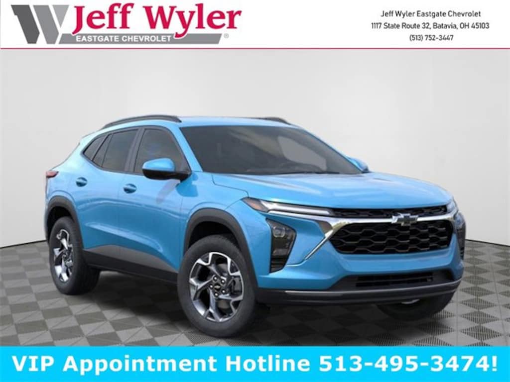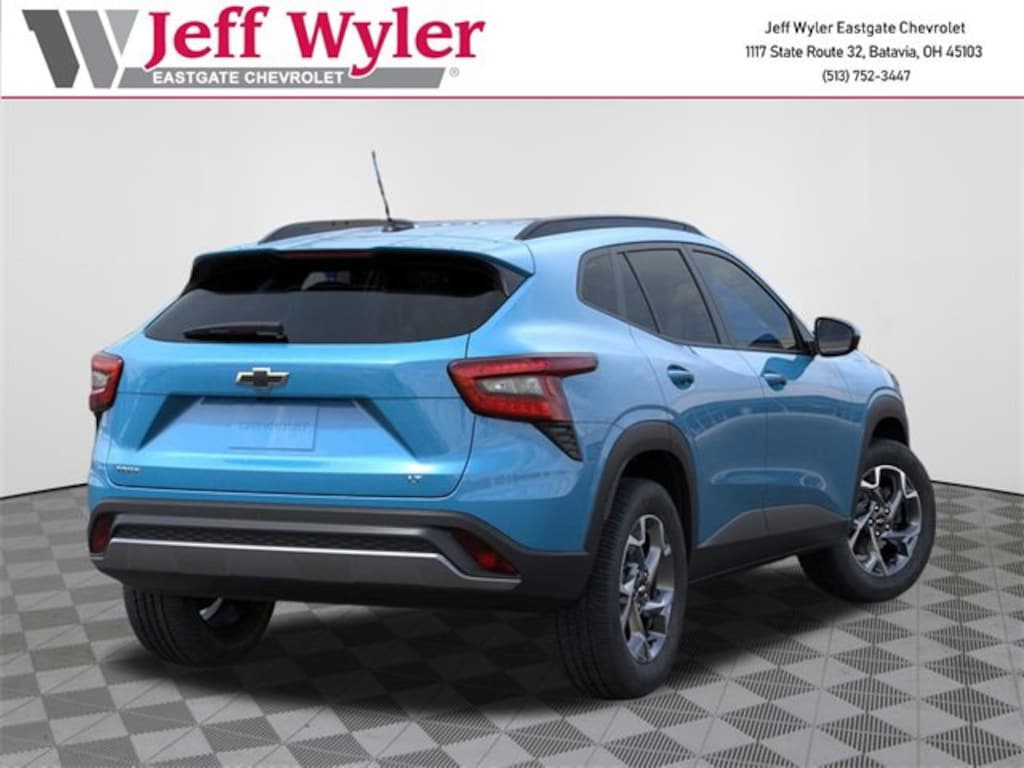 Marina Blue Metallic 2026 Chevrolet Trax LT ECOTEC 1.2L Turbo FWD 6-Speed Automatic 28/32 City/Highway MPG Jeff Wyler Eastgate Auto Mall is excited to offer this outstanding-looking 2026 Chevrolet Trax LT in Marina Blue Metallic. Well equipped with: Driver Confidence Package (Adaptive Cruise Control, Lane Change Alert w/Side Blind Zone Alert, Rear Cross Traffic Alert, and Rear Park Assist), Interior Protection Package (LPO) (Front & Rear Jet Black All-Weather Floor Liners (LPO) and Jet Black Cargo Liner (LPO)), LT Convenience Package (Front Doors Keyless Open, Heated Driver & Front Passenger Seats, Heated Power-Adjustable Outside Mirrors, Heated Steering Wheel, and Wrapped Steering Wheel), 2-Way Adjustable Front Head Restraints, 3.50 Final Drive Axle Ratio, 4-Way Manual Front Passenger Seat Adjuster, 4-Wheel Disc Brakes, 6 Speakers, 6-Speaker Audio System Feature, 6-Way Manual Driver Seat Adjuster, ABS brakes, Air Conditioning, Alloy wheels, AM/FM radio: SiriusXM, Auto High-beam Headlights, Automatic temperature control, Brake assist, Bumpers: body-color, Cloth/Evotex Seat Trim, Compass, Delay-off headlights, Driver door bin, Driver vanity mirror, Dual front impact airbags, Dual front side impact airbags, Electronic Stability Control, Emergency communication system: OnStar One Essentials, Exterior Parking Camera Rear, Front & Rear Black Bowtie Emblems (LPO), Front anti-roll bar, Front Bucket Seats, Front Center Armrest, Front reading lights, Front wheel independent suspension, Fully automatic headlights, Illuminated entry, Low tire pressure warning, Occupant sensing airbag, Outside temperature display, Overhead airbag, Overhead console, Panic alarm, Passenger door bin, Passenger vanity mirror, Power door mirrors, Power steering, Power windows, Premium audio system: Chevrolet Infotainment 3, Radio data system, Radio: AM/FM Stereo Audio System, Rear window defroster, Rear window wiper, Remote keyless entry, Security system, SiriusXM Trial Subscription, Speed control, Split folding rear seat, Spoiler, Steering wheel mounted audio controls, Tachometer, Telescoping steering wheel, Tilt steering wheel, Traction control, Trip computer, Variably intermittent wipers, Wheels: 17 Gray-Painted Machined Aluminum, and Wireless Apple CarPlay/Wireless Android Auto. 28/32 City/Highway MPG