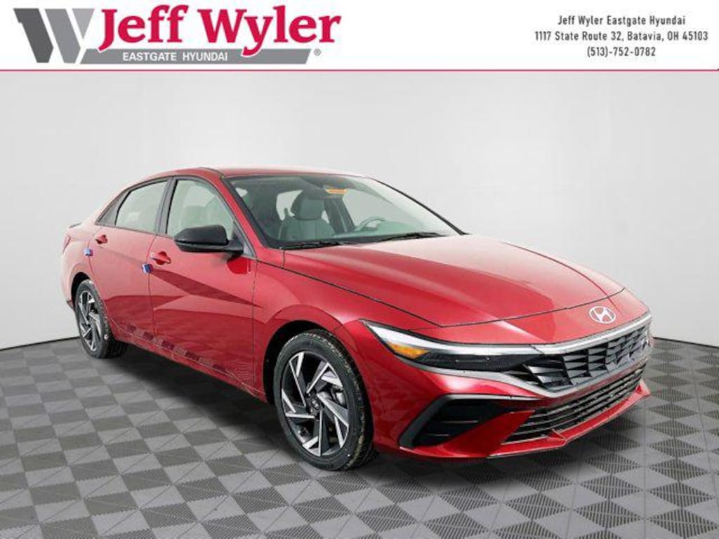 Priced below KBB Fair Purchase Price! Ultimate Red 2025 Hyundai Elantra SEL Sport I4 FWD CVT 30/39 City/Highway MPG Jeff Wyler Eastgate Auto Mall is excited to offer this charming 2025 Hyundai Elantra SEL Sport in Ultimate Red. Well equipped with: Option Group 01, 17" x 7.0J Alloy Wheels, 4-Wheel Disc Brakes, 6 Speakers, ABS brakes, Air Conditioning, All-Season Fitted Liners, Alloy wheels, AM/FM radio, Apple CarPlay & Android Auto, Auto High-beam Headlights, Automatic temperature control, Brake assist, Bumpers: body-color, Cargo Net, Carpeted Floor Mats, Delay-off headlights, Driver door bin, Driver vanity mirror, Dual front impact airbags, Dual front side impact airbags, Electronic Stability Control, Exterior Parking Camera Rear, First Aid Kit, Front anti-roll bar, Front Bucket Seats, Front Center Armrest, Front dual zone A/C, Front reading lights, Front wheel independent suspension, Fully automatic headlights, Illuminated entry, Leather Shift Knob, Leather steering wheel, Low tire pressure warning, Occupant sensing airbag, Outside temperature display, Overhead airbag, Overhead console, Panic alarm, Passenger door bin, Passenger vanity mirror, Power door mirrors, Power steering, Power windows, Premium Cloth Seat Trim, Radio: AM/FM/HD Display Audio, Rear side impact airbag, Rear window defroster, Remote keyless entry, Security system, Speed control, Speed-sensing steering, Spoiler, Steering wheel mounted audio controls, Tachometer, Telescoping steering wheel, Tilt steering wheel, Traction control, Trip computer, Variably intermittent wipers, and Wheel Locks. 30/39 City/Highway MPG