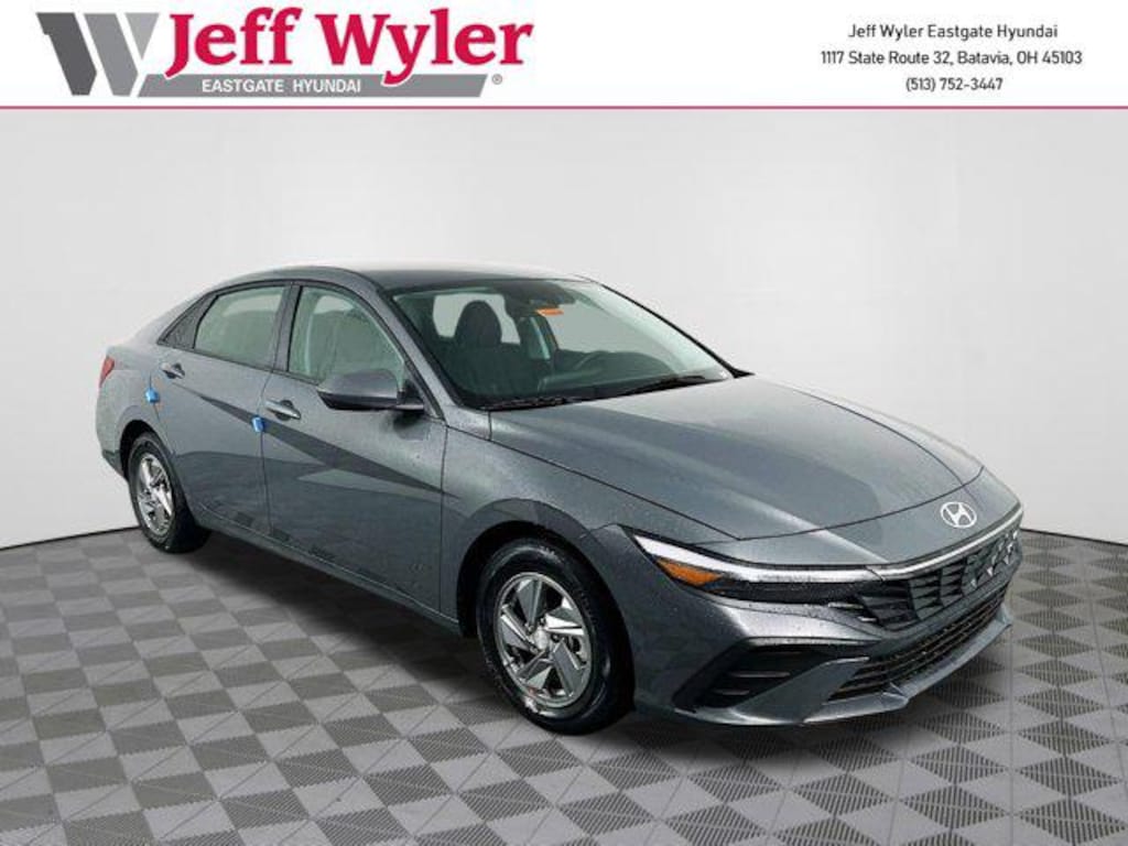 Ecotronic Gray 2025 Hyundai Elantra SE I4 FWD CVT 32/41 City/Highway MPG Jeff Wyler Eastgate Auto Mall is excited to offer this outstanding 2025 Hyundai Elantra SE in Ecotronic Gray. Well equipped with: Option Group 01, 15" x 6.0J Alloy Wheels, 4-Wheel Disc Brakes, 6 Speakers, ABS brakes, Air Conditioning, Alloy wheels, AM/FM radio, Apple CarPlay & Android Auto, Auto High-beam Headlights, Brake assist, Bumpers: body-color, Cargo Net, Cargo Side Bins, Carpeted Floor Mats, Delay-off headlights, Driver door bin, Driver vanity mirror, Dual front impact airbags, Dual front side impact airbags, Electronic Stability Control, Exterior Parking Camera Rear, First Aid Kit, Front anti-roll bar, Front Bucket Seats, Front Center Armrest, Front reading lights, Front wheel independent suspension, Fully automatic headlights, Illuminated entry, Low tire pressure warning, Occupant sensing airbag, Outside temperature display, Overhead airbag, Overhead console, Panic alarm, Passenger door bin, Passenger vanity mirror, Power door mirrors, Power steering, Power windows, Premium Cloth Seat Trim, Radio: AM/FM/HD Display Audio, Rear side impact airbag, Rear window defroster, Remote keyless entry, Reversible Cargo Tray, Security system, Speed control, Speed-sensing steering, Steering wheel mounted audio controls, Tachometer, Telescoping steering wheel, Tilt steering wheel, Traction control, Trip computer, Variably intermittent wipers, and Wheel Locks. 32/41 City/Highway MPG
