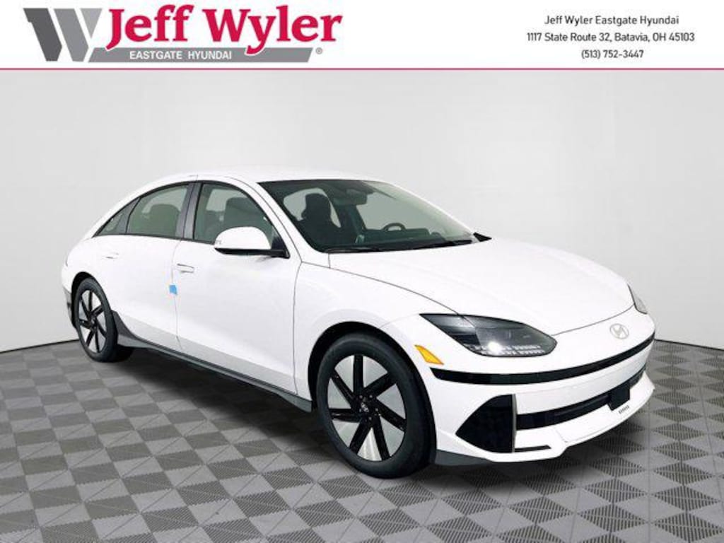 Priced below KBB Fair Purchase Price! Serenity White 2025 Hyundai IONIQ 6 SE Electric Motor AWD 1-Speed Automatic 130/111 City/Highway MPG Jeff Wyler Eastgate Auto Mall is pleased to offer this terrific-looking 2025 Hyundai IONIQ 6 SE in Serenity White. Well equipped with: Option Group 01, 4-Wheel Disc Brakes, 6 Speakers, ABS brakes, Air Conditioning, All Season Fitted Liners, Alloy Door Step Plates, Alloy wheels, AM/FM radio: SiriusXM, Apple CarPlay & Android Auto, Auto High-beam Headlights, Automatic temperature control, Brake assist, Bumpers: body-color, Carpeted Floor Mats, Delay-off headlights, Driver door bin, Driver vanity mirror, Dual front impact airbags, Dual front side impact airbags, Electronic Stability Control, Emergency communication system: Bluelink Connected Car Services (Bluelink+), Envelope Cargo Net, Four wheel independent suspension, Front anti-roll bar, Front Bucket Seats, Front Center Armrest, Front dual zone A/C, Front reading lights, Fully automatic headlights, harman/kardon® Speakers, Heated door mirrors, Heated Front Bucket Seats, Heated front seats, Illuminated entry, Leather steering wheel, Low tire pressure warning, Mudguards, Navigation System, Occupant sensing airbag, Outside temperature display, Overhead airbag, Overhead console, Panic alarm, Passenger door bin, Passenger vanity mirror, Power door mirrors, Power driver seat, Power steering, Power windows, Radio: AM/FM/SiriusXM/HD Radio Audio System, Rear anti-roll bar, Rear reading lights, Rear Reversible Cargo Tray, Rear seat center armrest, Rear window defroster, Remote keyless entry, Security system, Speed control, Speed-sensing steering, Split folding rear seat, Spoiler, Stain-Resistant Cloth Seating Surfaces, Steering wheel mounted audio controls, Telescoping steering wheel, Tilt steering wheel, Traction control, Trip computer, Turn signal indicator mirrors, Variably intermittent wipers, and Wheels: 18 x 7.5J Alloy. 130/111 City/Highway MPG