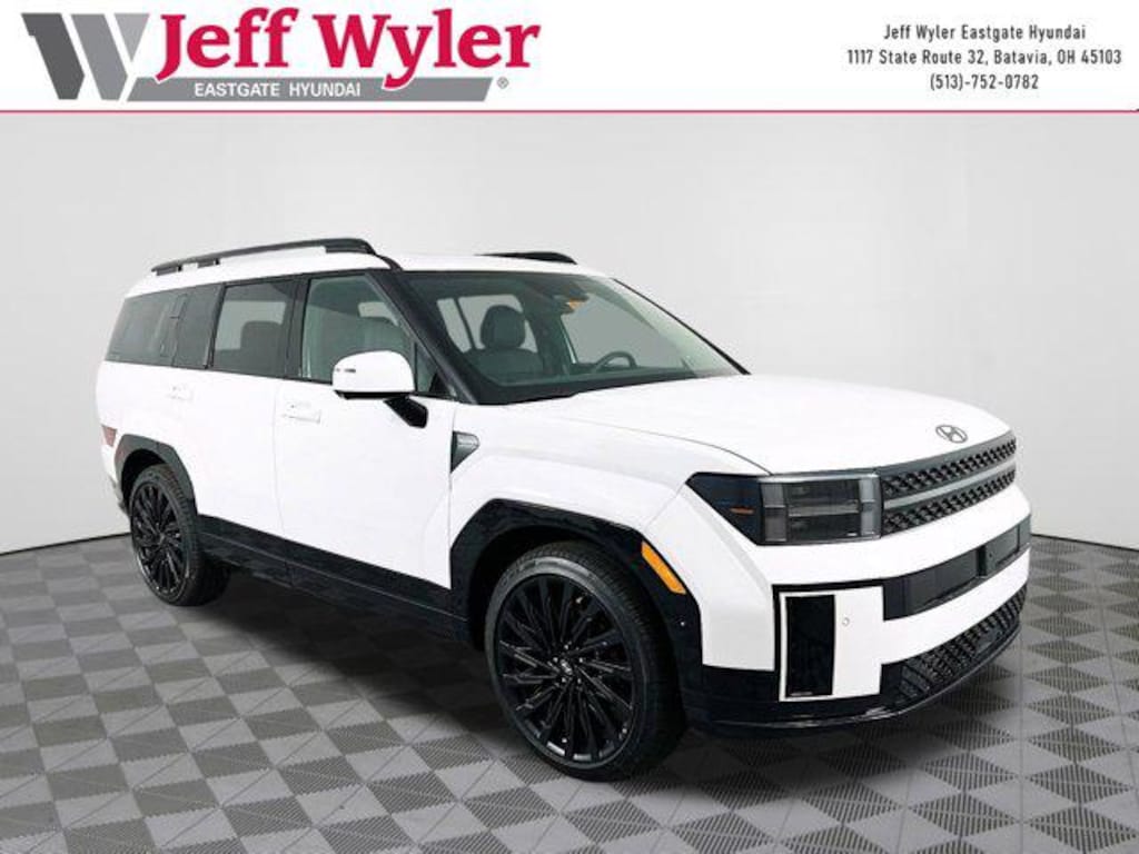 Priced below KBB Fair Purchase Price! Serenity White 2025 Hyundai Santa Fe Calligraphy 2.5L I4 FWD Shiftronic 20/29 City/Highway MPG Jeff Wyler Eastgate Auto Mall is pleased to offer this beautiful 2025 Hyundai Santa Fe Calligraphy in Serenity White. Well equipped with: Option Group 01, 12 Speakers, 3rd row seats: bench, 4-Wheel Disc Brakes, ABS brakes, Air Conditioning, Alloy wheels, AM/FM radio: SiriusXM, Apple CarPlay & Android Auto, Auto High-beam Headlights, Auto-dimming Rear-View mirror, Automatic temperature control, Brake assist, Bumpers: body-color, Cargo Cover, Cargo Net, Carpeted Floor Mats, Delay-off headlights, Driver door bin, Driver vanity mirror, Dual front impact airbags, Dual front side impact airbags, Electronic Stability Control, Emergency communication system, Exterior Parking Camera Rear, First Aid Kit, Four wheel independent suspension, Front anti-roll bar, Front Bucket Seats, Front Center Armrest, Front dual zone A/C, Front reading lights, Fully automatic headlights, Garage door transmitter: HomeLink, Heads-Up Display, Heated & Ventilated Front Bucket Seats, Heated door mirrors, Heated front seats, Heated rear seats, Heated steering wheel, Illuminated entry, Knee airbag, Leather steering wheel, Low tire pressure warning, Memory seat, Navigation System, Occupant sensing airbag, Outside temperature display, Overhead airbag, Overhead console, Panic alarm, Passenger door bin, Passenger vanity mirror, Power door mirrors, Power driver seat, Power Liftgate, Power moonroof, Power passenger seat, Power steering, Power windows, Premium Nappa Leather Seat Trim, Radio: AM/FM/HD Bose Premium Audio System, Rain sensing wipers, Rear anti-roll bar, Rear side impact airbag, Rear window defroster, Rear window wiper, Remote keyless entry, Security system, Speed control, Speed-sensing steering, Split folding rear seat, Spoiler, Steering wheel mounted audio controls, Tachometer, Telescoping steering wheel, Tilt steering wheel, Traction control, Transverse Panel, Trip computer, Turn signal indicator mirrors, Variably intermittent wipers, Ventilated front seats, and Wheels: 21" x 8.5J Unique Dark Finish Alloy. 20/29 City/Highway MPG