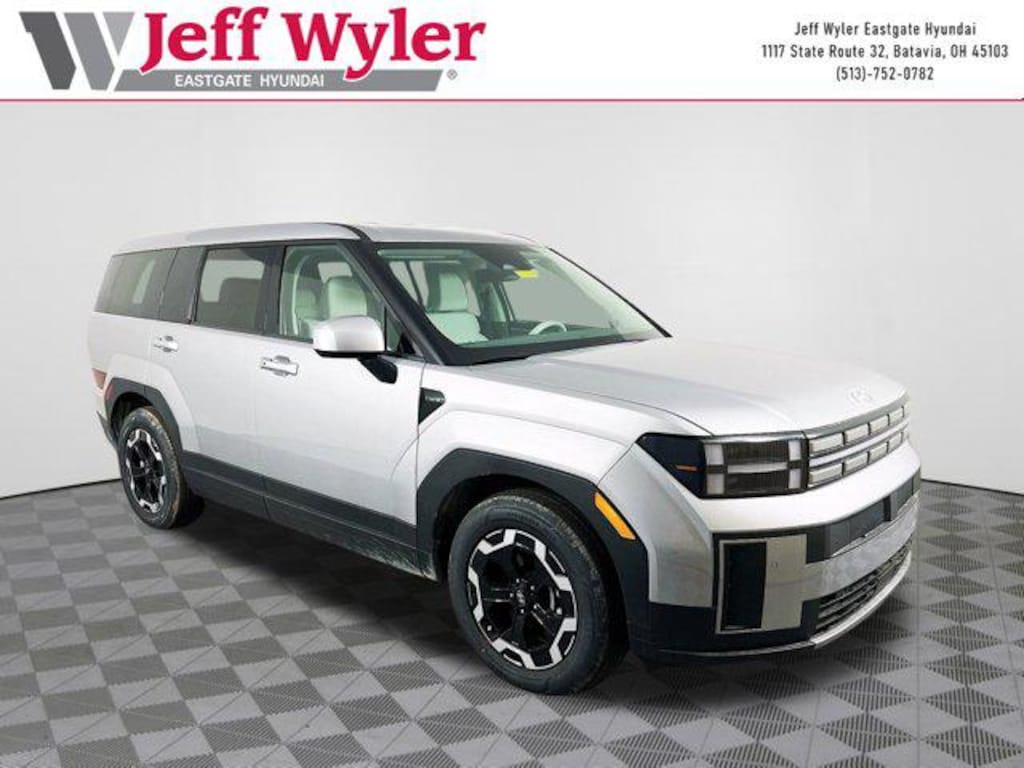 Priced below KBB Fair Purchase Price! Shimmering Silver Pearl 2025 Hyundai Santa Fe SE 2.5L I4 AWD Shiftronic 20/28 City/Highway MPG Jeff Wyler Eastgate Auto Mall is very proud to offer this handsome 2025 Hyundai Santa Fe SE in Shimmering Silver Pearl. Well equipped with: Option Group 01, 18" x 7.5J Alloy Wheels, 3rd row seats: bench, 4-Wheel Disc Brakes, 6 Speakers, ABS brakes, Air Conditioning, Alloy wheels, AM/FM radio: SiriusXM, Apple CarPlay & Android Auto, Auto High-beam Headlights, Brake assist, Bumpers: body-color, Cargo Cover, Cargo Net, Carpeted Floor Mats, Delay-off headlights, Driver door bin, Driver vanity mirror, Dual front impact airbags, Dual front side impact airbags, Electronic Stability Control, Emergency communication system, Exterior Parking Camera Rear, First Aid Kit, Four wheel independent suspension, Front anti-roll bar, Front Bucket Seats, Front Center Armrest, Front reading lights, Fully automatic headlights, Heated door mirrors, Illuminated entry, Knee airbag, Leather steering wheel, Low tire pressure warning, Occupant sensing airbag, Outside temperature display, Overhead airbag, Overhead console, Panic alarm, Passenger door bin, Passenger vanity mirror, Power door mirrors, Power Liftgate, Power steering, Power windows, Radio: AM/FM/HD Display Audio, Rear anti-roll bar, Rear seat center armrest, Rear side impact airbag, Rear window defroster, Rear window wiper, Remote keyless entry, Security system, Speed control, Speed-sensing steering, Split folding rear seat, Spoiler, Steering wheel mounted audio controls, Tachometer, Telescoping steering wheel, Tilt steering wheel, Traction control, Trip computer, Variably intermittent wipers, and YES Essentials Stain-Resistant Cloth Seat Trim. 20/28 City/Highway MPG