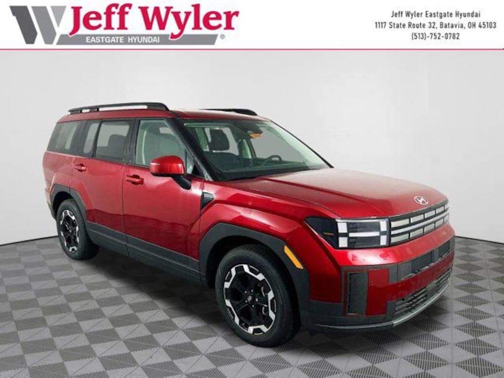 Priced below KBB Fair Purchase Price! Ultimate Red 2025 Hyundai Santa Fe SEL 2.5L I4 AWD Shiftronic 20/28 City/Highway MPG Jeff Wyler Eastgate Auto Mall is excited to offer this charming 2025 Hyundai Santa Fe SEL in Ultimate Red. Well equipped with: Option Group 01, 18" x 7.5J Alloy Wheels, 3rd row seats: bench, 4-Wheel Disc Brakes, 6 Speakers, ABS brakes, Air Conditioning, Alloy wheels, AM/FM radio: SiriusXM, Apple CarPlay & Android Auto, Auto High-beam Headlights, Automatic temperature control, Brake assist, Bumpers: body-color, Cargo Cover, Cargo Net, Carpeted Floor Mats, Delay-off headlights, Driver door bin, Driver vanity mirror, Dual front impact airbags, Dual front side impact airbags, Electronic Stability Control, Emergency communication system, Exterior Parking Camera Rear, First Aid Kit, Four wheel independent suspension, Front anti-roll bar, Front Bucket Seats, Front Center Armrest, Front dual zone A/C, Front reading lights, Fully automatic headlights, H-Tex Leatherette Seat Trim, Heated door mirrors, Heated Front Bucket Seats, Heated front seats, Illuminated entry, Knee airbag, Leather steering wheel, Low tire pressure warning, Occupant sensing airbag, Outside temperature display, Overhead airbag, Overhead console, Panic alarm, Passenger door bin, Passenger vanity mirror, Power door mirrors, Power driver seat, Power Liftgate, Power steering, Power windows, Radio: AM/FM/HD Display Audio, Rear anti-roll bar, Rear seat center armrest, Rear side impact airbag, Rear window defroster, Rear window wiper, Remote keyless entry, Roadside Assistance Kit, Security system, Speed control, Speed-sensing steering, Split folding rear seat, Spoiler, Steering wheel mounted audio controls, Tachometer, Telescoping steering wheel, Tilt steering wheel, Traction control, Trip computer, Turn signal indicator mirrors, Variably intermittent wipers, and Wheel Locks. 20/28 City/Highway MPG
