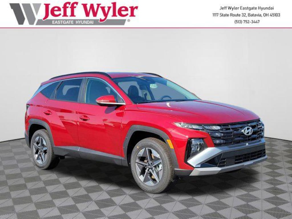 Priced below KBB Fair Purchase Price! Ultimate Red 2025 Hyundai Tucson SEL Convenience 2.5L I4 DGI DOHC 16V LEV3-SULEV30 187hp AWD 8-Speed Automatic with SHIFTRONIC 24/30 City/Highway MPG Jeff Wyler Eastgate Auto Mall is very proud to offer this beautiful 2025 Hyundai Tucson SEL Convenience in Ultimate Red. Well equipped with: Option Group 01, 18" Alloy Wheels, 4-Wheel Disc Brakes, 6 Speakers, ABS brakes, Air Conditioning, Alloy wheels, AM/FM radio: SiriusXM, Apple CarPlay & Android Auto, Auto High-beam Headlights, Auto-dimming Rear-View mirror, Automatic temperature control, Brake assist, Bumpers: body-color, Cargo Net, Carpeted Floor Mats, Delay-off headlights, Driver door bin, Driver vanity mirror, Dual front impact airbags, Dual front side impact airbags, Electronic Stability Control, Emergency communication system: Bluelink+, First Aid Kit, Four wheel independent suspension, Front anti-roll bar, Front Bucket Seats, Front Center Armrest, Front dual zone A/C, Front reading lights, Fully automatic headlights, H-Tex Seat Trim, Heated door mirrors, Heated Front Bucket Seats, Heated front seats, Illuminated entry, Leather steering wheel, Low tire pressure warning, Navigation System, Occupant sensing airbag, Outside temperature display, Overhead airbag, Overhead console, Panic alarm, Passenger door bin, Passenger vanity mirror, Power door mirrors, Power driver seat, Power Liftgate, Power moonroof, Power steering, Power windows, Radio data system, Radio: AM/FM/HD Audio System, Rear anti-roll bar, Rear reading lights, Rear seat center armrest, Rear side impact airbag, Rear window defroster, Rear window wiper, Remote keyless entry, Roadside Assistance Kit, Security system, Speed control, Split folding rear seat, Spoiler, Steering wheel mounted audio controls, Tachometer, Telescoping steering wheel, Tilt steering wheel, Tow Hitch, Traction control, Trip computer, Turn signal indicator mirrors, and Variably intermittent wipers. 24/30 City/Highway MPG