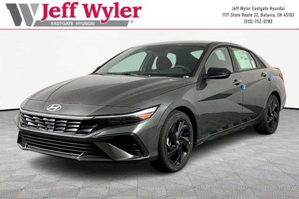 Priced below KBB Fair Purchase Price! Amazon Gray 2026 Hyundai Elantra SEL Sport I4 FWD CVT 30/39 City/Highway MPG Jeff Wyler Eastgate Auto Mall is excited to offer this superb-looking 2026 Hyundai Elantra SEL Sport in Amazon Gray. Well equipped with: Option Group 01, 4-Wheel Disc Brakes, 6 Speakers, ABS brakes, Air Conditioning, All-Season Fitted Liners, Alloy wheels, AM/FM radio, Apple CarPlay & Android Auto, Auto High-beam Headlights, Automatic temperature control, Brake assist, Bumpers: body-color, Cargo Net, Cargo Tray, Carpeted Floor Mats, Delay-off headlights, Driver door bin, Driver vanity mirror, Dual front impact airbags, Dual front side impact airbags, Electronic Stability Control, Exterior Parking Camera Rear, Front anti-roll bar, Front Bucket Seats, Front Center Armrest, Front dual zone A/C, Front reading lights, Front wheel independent suspension, Fully automatic headlights, Illuminated entry, Low tire pressure warning, Occupant sensing airbag, Outside temperature display, Overhead airbag, Overhead console, Panic alarm, Passenger door bin, Passenger vanity mirror, Power door mirrors, Power steering, Power windows, Premium Cloth Seat Trim, Radio: AM/FM/HD Display Audio, Rear side impact airbag, Rear window defroster, Remote keyless entry, Security system, Speed control, Speed-sensing steering, Spoiler, Steering wheel mounted audio controls, Tachometer, Telescoping steering wheel, Tilt steering wheel, Traction control, Trip computer, Variably intermittent wipers, and Wheels: 17" x 7.0J Alloy Gloss Black w/Dark Finish. 30/39 City/Highway MPG Price includes: $2000 - Hyundai HMF Dealer Choice : $2000 discount and 5.39% APR for 24 months. $44.05 per $1000 financed. Available to well qualified buyers who finance through Hyundai Motor Finance. H704. Exp. 04/30/2026