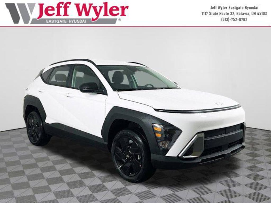 Atlas White 2026 Hyundai Kona SEL Sport 2.0L I4 DOHC 16V AWD CVT 26/29 City/Highway MPG Jeff Wyler Eastgate Auto Mall is honored to offer this great-looking 2026 Hyundai Kona SEL Sport in Atlas White. Well equipped with: Option Group 01, 4-Wheel Disc Brakes, 6 Speakers, ABS brakes, Air Conditioning, Alloy wheels, AM/FM radio: SiriusXM, Apple CarPlay & Android Auto, Auto High-beam Headlights, Automatic temperature control, Brake assist, Bumpers: body-color, Cloth Seat Trim, Delay-off headlights, Driver door bin, Driver vanity mirror, Dual front impact airbags, Dual front side impact airbags, Electronic Stability Control, Emergency communication system: None, Exterior Parking Camera Rear, Four wheel independent suspension, Front anti-roll bar, Front Bucket Seats, Front Center Armrest, Front dual zone A/C, Front reading lights, Fully automatic headlights, Heated door mirrors, Heated Front Bucket Seats, Heated front seats, Illuminated entry, Leather steering wheel, Low tire pressure warning, Occupant sensing airbag, Outside temperature display, Overhead airbag, Panic alarm, Passenger door bin, Passenger vanity mirror, Power door mirrors, Power steering, Power windows, Radio: AM/FM/SiriusXM/HD Audio System, Rear anti-roll bar, Rear seat center armrest, Rear window defroster, Rear window wiper, Remote keyless entry, Security system, Speed control, Speed-sensing steering, Split folding rear seat, Spoiler, Steering wheel mounted audio controls, Tachometer, Telescoping steering wheel, Tilt steering wheel, Traction control, Trip computer, Variably intermittent wipers, and Wheels: 18" x 7.0J Black Alloy. 26/29 City/Highway MPG