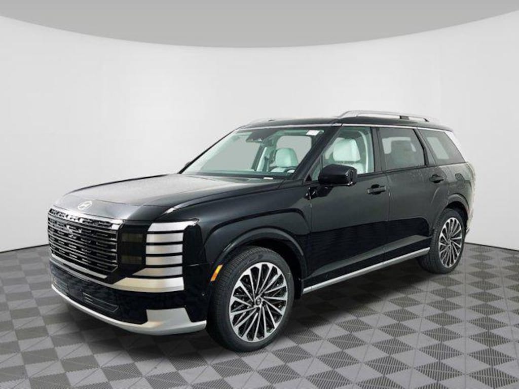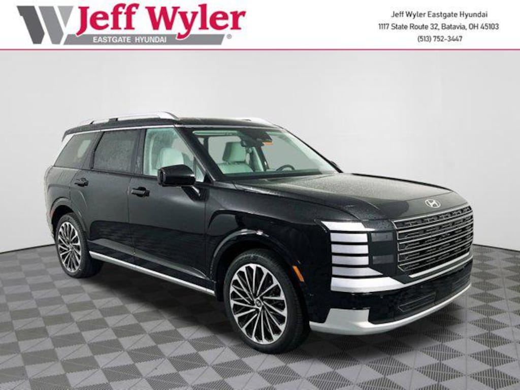 Abyss Black Pearl 2026 Hyundai Palisade Calligraphy V6 AWD 8-Speed Automatic 18/24 City/Highway MPG Jeff Wyler Eastgate Auto Mall is pumped up to offer this attractive 2026 Hyundai Palisade Calligraphy in Abyss Black Pearl. Well equipped with: Option Group 01, 14 Speakers, 3rd row seats: split-bench, 4-Wheel Disc Brakes, ABS brakes, Air Conditioning, Alloy wheels, AM/FM radio: SiriusXM, Apple CarPlay & Android Auto, Audio memory, Auto High-beam Headlights, Auto-dimming door mirrors, Auto-dimming Rear-View mirror, Auto-leveling suspension, Automatic temperature control, Brake assist, Bumpers: body-color, Cargo Net, Cargo Tray, Carpeted Floor Mats, Compass, Delay-off headlights, Driver door bin, Driver vanity mirror, Dual front impact airbags, Dual front side impact airbags, Electronic Stability Control, Emergency communication system: Bluelink+, Exterior Parking Camera Rear, First Aid Kit, Four wheel independent suspension, Front anti-roll bar, Front Bucket Seats, Front Center Armrest, Front dual zone A/C, Front reading lights, Fully automatic headlights, Garage door transmitter: HomeLink, Genuine wood console insert, Genuine wood dashboard insert, Heads-Up Display, Heated & Ventilated Front Bucket Seats, Heated door mirrors, Heated front seats, Heated rear seats, Heated steering wheel, HVAC memory, Illuminated entry, Knee airbag, Leather steering wheel, Low tire pressure warning, Memory seat, Mud Guards, Navigation System, Occupant sensing airbag, Outside temperature display, Overhead airbag, Overhead console, Panic alarm, Passenger door bin, Passenger vanity mirror, Power door mirrors, Power driver seat, Power Liftgate, Power moonroof, Power passenger seat, Power steering, Power windows, Premium Nappa Leather Seat Trim, Radio data system, Radio: Infotainment Navigation System, Rain sensing wipers, Rear air conditioning, Rear anti-roll bar, Rear audio controls, Rear reading lights, Rear side impact airbag, Rear window defroster, Rear window wiper, Reclining 3rd row seat, Remote keyless entry, Security system, Speed control, Split folding rear seat, Spoiler, Steering wheel mounted audio controls, Tachometer, Telescoping steering wheel, Tilt steering wheel, Traction control, Trip computer, Turn signal indicator mirrors, Variably intermittent wipers, Ventilated front seats, Ventilated rear seats, and Wheels: 21" x 8.5J Alloy.