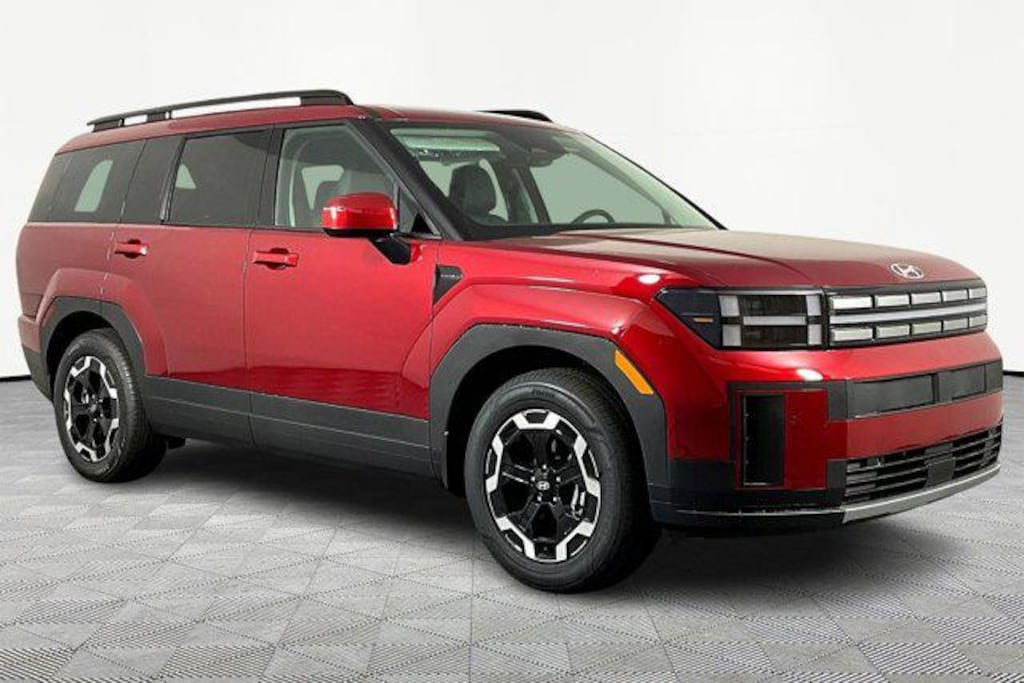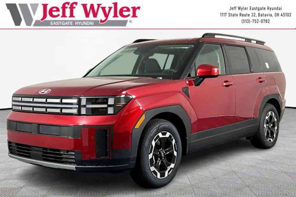 Ultimate Red 2026 Hyundai Santa Fe SEL 2.5L I4 AWD 8-Speed Automatic with SHIFTRONIC 20/28 City/Highway MPG Jeff Wyler Eastgate Auto Mall is honored to offer this attractive 2026 Hyundai Santa Fe SEL in Ultimate Red. Well equipped with: Option Group 01, 18" x 7.5J Alloy Wheels, 3rd row seats: bench, 4-Wheel Disc Brakes, 6 Speakers, ABS brakes, Air Conditioning, Alloy wheels, AM/FM radio: SiriusXM, Apple CarPlay & Android Auto, Auto High-beam Headlights, Automatic temperature control, Brake assist, Bumpers: body-color, Cargo Blocks, Cargo Cover/Screen, Cargo Net, Cargo Tray, Carpeted Floor Mats, Delay-off headlights, Driver door bin, Driver vanity mirror, Dual front impact airbags, Dual front side impact airbags, Electronic Stability Control, Emergency communication system, Exterior Parking Camera Rear, First Aid Kit, Four wheel independent suspension, Front anti-roll bar, Front Bucket Seats, Front Center Armrest, Front dual zone A/C, Front reading lights, Fully automatic headlights, H-Tex Leatherette Seat Trim, Heated door mirrors, Heated Front Bucket Seats, Heated front seats, Illuminated entry, Knee airbag, Leather steering wheel, Low tire pressure warning, Mudguards, Occupant sensing airbag, Outside temperature display, Overhead airbag, Overhead console, Panic alarm, Passenger door bin, Passenger vanity mirror, Power door mirrors, Power driver seat, Power Liftgate, Power steering, Power windows, Radio: AM/FM/HD Display Audio, Rear anti-roll bar, Rear seat center armrest, Rear side impact airbag, Rear window defroster, Rear window wiper, Remote keyless entry, Roadside Assistance Kit, Security system, Speed control, Speed-sensing steering, Split folding rear seat, Spoiler, Steering wheel mounted audio controls, Tachometer, Telescoping steering wheel, Tilt steering wheel, Traction control, Trip computer, Turn signal indicator mirrors, and Variably intermittent wipers. 20/28 City/Highway MPG