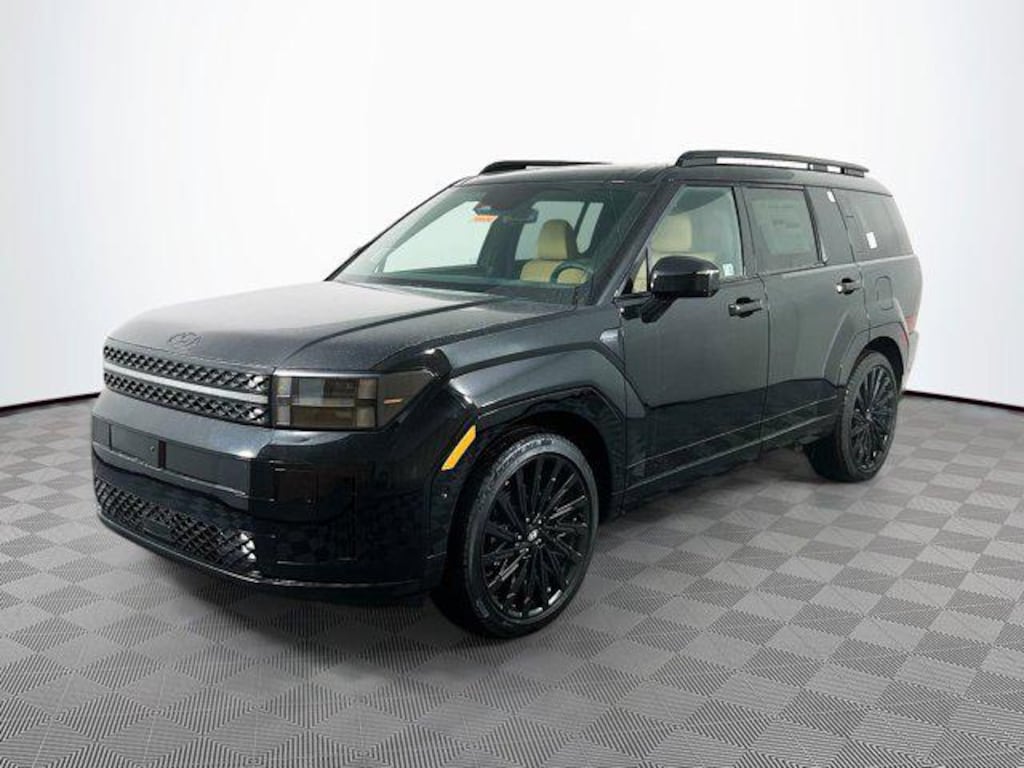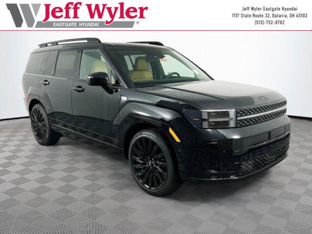 Phantom Black 2026 Hyundai Santa Fe Calligraphy 2.5L I4 AWD 8-Speed Automatic with SHIFTRONIC 20/28 City/Highway MPG Jeff Wyler Eastgate Auto Mall is pumped up to offer this terrific-looking 2026 Hyundai Santa Fe Calligraphy in Phantom Black. Well equipped with: Option Group 01, 12 Speakers, 3rd row seats: bench, 4-Wheel Disc Brakes, ABS brakes, Air Conditioning, All Season Fitted Liners, Alloy wheels, AM/FM radio: SiriusXM, Apple CarPlay & Android Auto, Auto High-beam Headlights, Auto-dimming Rear-View mirror, Automatic temperature control, Brake assist, Bumpers: body-color, Cargo Cover/Screen, Cargo Net, Carpeted Floor Mats, Delay-off headlights, Driver door bin, Driver vanity mirror, Dual front impact airbags, Dual front side impact airbags, Electronic Stability Control, Emergency communication system, Exterior Parking Camera Rear, First Aid Kit, Four wheel independent suspension, Front anti-roll bar, Front Bucket Seats, Front Center Armrest, Front dual zone A/C, Front reading lights, Fully automatic headlights, Garage door transmitter: HomeLink, Heads-Up Display, Heated and Ventilated Front Bucket Seats, Heated door mirrors, Heated front seats, Heated rear seats, Heated steering wheel, Illuminated entry, Knee airbag, Leather steering wheel, Low tire pressure warning, Memory seat, Navigation System, Occupant sensing airbag, Outside temperature display, Overhead airbag, Overhead console, Panic alarm, Passenger door bin, Passenger vanity mirror, Power door mirrors, Power driver seat, Power Liftgate, Power moonroof, Power passenger seat, Power steering, Power windows, Quilted Premium Nappa Leather Seat Trim, Radio: AM/FM/HD Bose Premium Audio System, Rain sensing wipers, Rear anti-roll bar, Rear side impact airbag, Rear window defroster, Rear window wiper, Remote keyless entry, Security system, Speed control, Speed-sensing steering, Split folding rear seat, Spoiler, Steering wheel mounted audio controls, Tachometer, Telescoping steering wheel, Tilt steering wheel, Traction control, Trip computer, Turn signal indicator mirrors, Variably intermittent wipers, Ventilated front seats, and Wheels: 21" x 8.5J Unique Dark Finish Alloy. 20/28 City/Highway MPG