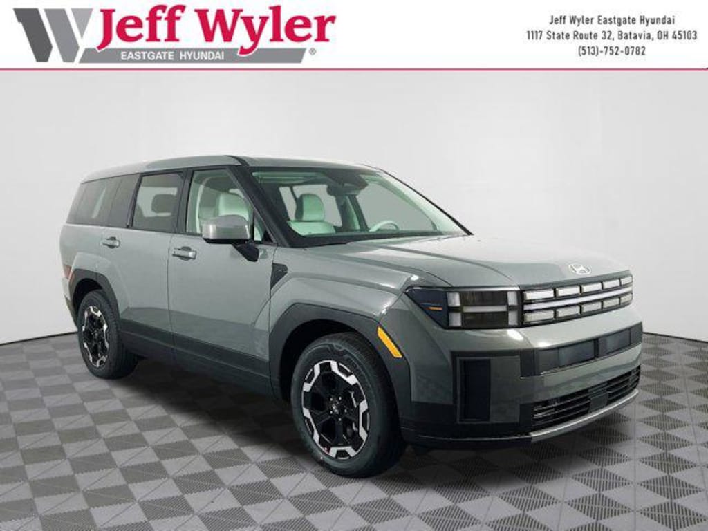 Hampton Gray 2026 Hyundai Santa Fe SE 2.5L I4 FWD 8-Speed Automatic with SHIFTRONIC Jeff Wyler Eastgate Auto Mall is excited to offer this attractive-looking 2026 Hyundai Santa Fe SE in Hampton Gray. Well equipped with: Option Group 01, 18" x 7.5J Alloy Wheels, 3rd row seats: bench, 4-Wheel Disc Brakes, 6 Speakers, ABS brakes, Air Conditioning, All Season Fitted Liners, Alloy wheels, AM/FM radio: SiriusXM, Apple CarPlay & Android Auto, Auto High-beam Headlights, Brake assist, Bumpers: body-color, Cargo Cover/Screen, Cargo Net, Carpeted Floor Mats, Delay-off headlights, Driver door bin, Driver vanity mirror, Dual front impact airbags, Dual front side impact airbags, Electronic Stability Control, Emergency communication system, Exterior Parking Camera Rear, First Aid Kit, Four wheel independent suspension, Front anti-roll bar, Front Bucket Seats, Front Center Armrest, Front reading lights, Fully automatic headlights, Heated door mirrors, Illuminated entry, Knee airbag, Leather steering wheel, Low tire pressure warning, Occupant sensing airbag, Outside temperature display, Overhead airbag, Overhead console, Panic alarm, Passenger door bin, Passenger vanity mirror, Power door mirrors, Power Liftgate, Power steering, Power windows, Radio: AM/FM/HD Display Audio, Rear anti-roll bar, Rear seat center armrest, Rear side impact airbag, Rear window defroster, Rear window wiper, Remote keyless entry, Security system, Speed control, Speed-sensing steering, Split folding rear seat, Spoiler, Steering wheel mounted audio controls, Tachometer, Telescoping steering wheel, Tilt steering wheel, Traction control, Trip computer, Variably intermittent wipers, and YES Essentials Stain-Resistant Cloth Seat Trim.