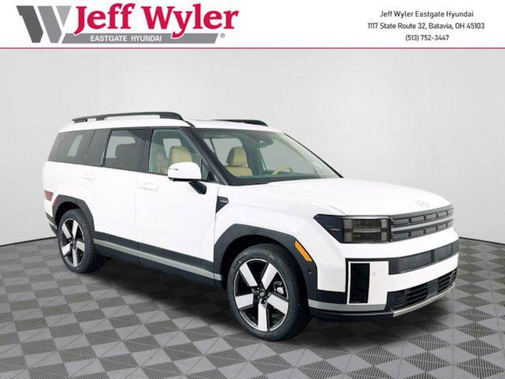 Serenity White 2026 Hyundai Santa Fe Hybrid Limited I4 AWD 6-Speed Automatic with Shiftronic Jeff Wyler Eastgate Auto Mall is delighted to offer this good-looking 2026 Hyundai Santa Fe Hybrid Limited in Serenity White. Well equipped with: 7-Passenger Bench Seating (Option Group 02), 12 Speakers, 3rd row seats: bench, 4-Wheel Disc Brakes, ABS brakes, Air Conditioning, Alloy wheels, AM/FM radio: SiriusXM, Apple CarPlay & Android Auto, Auto High-beam Headlights, Auto-dimming Rear-View mirror, Automatic temperature control, Brake assist, Bumpers: body-color, Cargo Net, Cargo Tray, Carpeted Floor Mats, Delay-off headlights, Driver door bin, Driver vanity mirror, Dual front impact airbags, Dual front side impact airbags, Electronic Stability Control, Emergency communication system, Exterior Parking Camera Rear, First Aid Kit, Four wheel independent suspension, Front anti-roll bar, Front Bucket Seats, Front Center Armrest, Front dual zone A/C, Front reading lights, Fully automatic headlights, Garage door transmitter: HomeLink, Heated & Ventilated Front Bucket Seats, Heated door mirrors, Heated front seats, Heated rear seats, Heated steering wheel, Illuminated entry, Knee airbag, Leather Seat Trim, Leather steering wheel, Low tire pressure warning, Memory seat, Navigation System, Occupant sensing airbag, Outside temperature display, Overhead airbag, Overhead console, Panic alarm, Passenger door bin, Passenger vanity mirror, Power door mirrors, Power driver seat, Power Liftgate, Power moonroof, Power passenger seat, Power steering, Power windows, Radio: AM/FM/HD Bose Premium Audio System, Rain sensing wipers, Rear anti-roll bar, Rear side impact airbag, Rear window defroster, Rear window wiper, Remote keyless entry, Roof Rack Crossbars, Security system, Severe Weather Kit, Speed control, Speed-sensing steering, Split folding rear seat, Spoiler, Steering wheel mounted audio controls, Tachometer, Telescoping steering wheel, Tilt steering wheel, Traction control, Trip computer, Turn signal indicator mirrors, Variably intermittent wipers, Ventilated front seats, and Wheels: 20" x 8.5J Alloy.