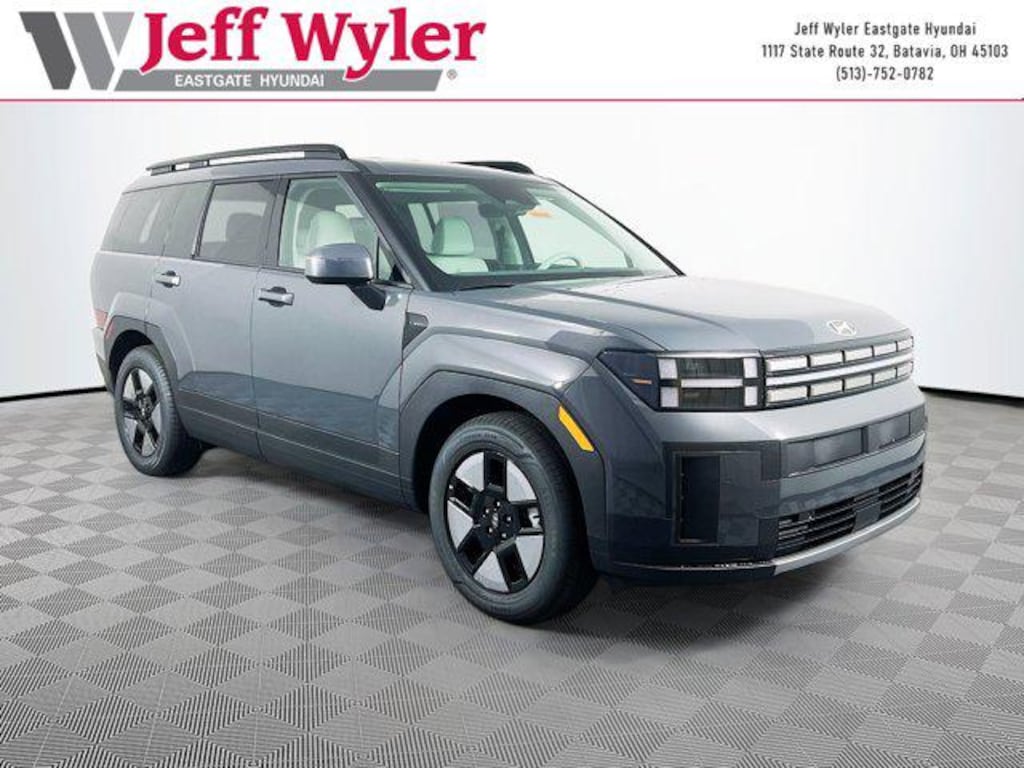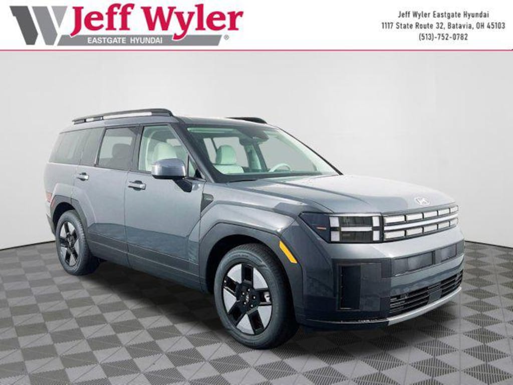 Ecotronic Gray 2026 Hyundai Santa Fe Hybrid SEL I4 AWD 6-Speed Automatic with Shiftronic Jeff Wyler Eastgate Auto Mall is proud to offer this superb-looking 2026 Hyundai Santa Fe Hybrid SEL in Ecotronic Gray. Well equipped with: Option Group 01, 18" x 7.5J Alloy Wheels, 3rd row seats: bench, 4-Wheel Disc Brakes, 6 Speakers, ABS brakes, Air Conditioning, Alloy wheels, AM/FM radio: SiriusXM, Apple CarPlay & Android Auto, Auto High-beam Headlights, Automatic temperature control, Brake assist, Bumpers: body-color, Cargo Cover/Screen, Cargo Net, Cargo Organizer, Cargo Tray, Carpeted Floor Mats, Delay-off headlights, Driver door bin, Driver vanity mirror, Dual front impact airbags, Dual front side impact airbags, Electronic Stability Control, Emergency communication system, Exterior Parking Camera Rear, First Aid Kit, Four wheel independent suspension, Front anti-roll bar, Front Bucket Seats, Front Center Armrest, Front dual zone A/C, Front reading lights, Fully automatic headlights, H-Tex Leatherette Seat Trim, Heated door mirrors, Heated Front Bucket Seats, Heated front seats, Illuminated entry, Knee airbag, Leather steering wheel, Low tire pressure warning, Occupant sensing airbag, Outside temperature display, Overhead airbag, Overhead console, Panic alarm, Passenger door bin, Passenger vanity mirror, Power door mirrors, Power driver seat, Power Liftgate, Power steering, Power windows, Radio: AM/FM/HD Display Audio, Rear anti-roll bar, Rear seat center armrest, Rear side impact airbag, Rear window defroster, Rear window wiper, Remote keyless entry, Security system, Severe Weather Kit, Speed control, Speed-sensing steering, Split folding rear seat, Spoiler, Steering wheel mounted audio controls, Tachometer, Telescoping steering wheel, Tilt steering wheel, Traction control, Trip computer, Turn signal indicator mirrors, and Variably intermittent wipers.