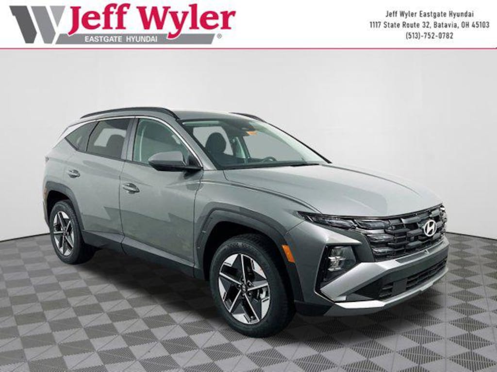 Hampton Gray 2026 Hyundai Tucson SEL 2.5L I4 DGI DOHC 16V LEV3-SULEV30 187hp AWD 8-Speed Automatic with SHIFTRONIC 24/30 City/Highway MPG Jeff Wyler Eastgate Auto Mall is proud to offer this superb-looking 2026 Hyundai Tucson SEL in Hampton Gray. Well equipped with: Option Group 01, 18" x 7.5J Alloy Wheels, 4-Wheel Disc Brakes, 6 Speakers, ABS brakes, Air Conditioning, Alloy wheels, AM/FM radio: SiriusXM, Apple CarPlay & Android Auto, Auto High-beam Headlights, Automatic temperature control, Brake assist, Bumpers: body-color, Cargo Net, Carpeted Floor Mats, Delay-off headlights, Driver door bin, Driver vanity mirror, Dual front impact airbags, Dual front side impact airbags, Electronic Stability Control, Emergency communication system: Bluelink+, First Aid Kit, Four wheel independent suspension, Front anti-roll bar, Front Bucket Seats, Front Center Armrest, Front dual zone A/C, Front reading lights, Fully automatic headlights, H-Tex Leatherette Seat Trim, Heated door mirrors, Heated Front Bucket Seats, Heated front seats, Illuminated entry, Low tire pressure warning, Occupant sensing airbag, Outside temperature display, Overhead airbag, Overhead console, Panic alarm, Passenger door bin, Passenger vanity mirror, Power door mirrors, Power driver seat, Power Liftgate, Power steering, Power windows, Radio data system, Radio: AM/FM/HD Audio System, Rear anti-roll bar, Rear reading lights, Rear seat center armrest, Rear side impact airbag, Rear window defroster, Rear window wiper, Remote keyless entry, Security system, Speed control, Split folding rear seat, Spoiler, Steering wheel mounted audio controls, Tachometer, Telescoping steering wheel, Tilt steering wheel, Tow Hitch, Traction control, Trip computer, and Variably intermittent wipers. 24/30 City/Highway MPG