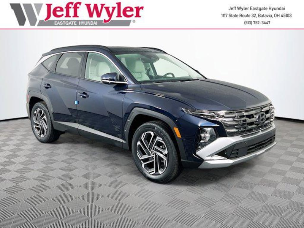 Deep Sea 2026 Hyundai Tucson Hybrid Limited 1.6L I4 DGI Hybrid Turbocharged DOHC 16V LEV3-SULEV30 AWD 6-Speed Automatic 37/36 City/Highway MPG Jeff Wyler Eastgate Auto Mall is pleased to offer this great-looking 2026 Hyundai Tucson Hybrid Limited in Deep Sea. Well equipped with: Option Group 01, 4-Wheel Disc Brakes, 8 Speakers, ABS brakes, Air Conditioning, Alloy wheels, AM/FM radio: SiriusXM, Apple CarPlay & Android Auto, Auto High-beam Headlights, Auto-dimming Rear-View mirror, Automatic temperature control, Brake assist, Bumpers: body-color, Carpeted Floor Mats, Delay-off headlights, Driver door bin, Driver vanity mirror, Dual front impact airbags, Dual front side impact airbags, Electronic Stability Control, Emergency communication system: Bluelink+, Four wheel independent suspension, Front anti-roll bar, Front Bucket Seats, Front Center Armrest, Front dual zone A/C, Front reading lights, Fully automatic headlights, Garage door transmitter: HomeLink, Heads-Up Display, Heated & Ventilated Front Bucket Seats, Heated door mirrors, Heated front seats, Heated rear seats, Heated steering wheel, Illuminated entry, Leather steering wheel, Leather-Trimmed Seat Trim, Low tire pressure warning, Memory seat, Navigation System, Occupant sensing airbag, Outside temperature display, Overhead airbag, Overhead console, Panic alarm, Passenger door bin, Passenger vanity mirror, Power door mirrors, Power driver seat, Power Liftgate, Power moonroof, Power passenger seat, Power steering, Power windows, Radio data system, Radio: Bose Premium w/AM/FM/HD Audio System, Rain sensing wipers, Rear anti-roll bar, Rear reading lights, Rear seat center armrest, Rear side impact airbag, Rear window defroster, Rear window wiper, Remote keyless entry, Security system, Speed control, Split folding rear seat, Spoiler, Steering wheel mounted audio controls, Tachometer, Telescoping steering wheel, Tilt steering wheel, Traction control, Trip computer, Turn signal indicator mirrors, Variably intermittent wipers, Ventilated front seats, and Wheels: 19" x 7.5J Alloy. 37/36 City/Highway MPG