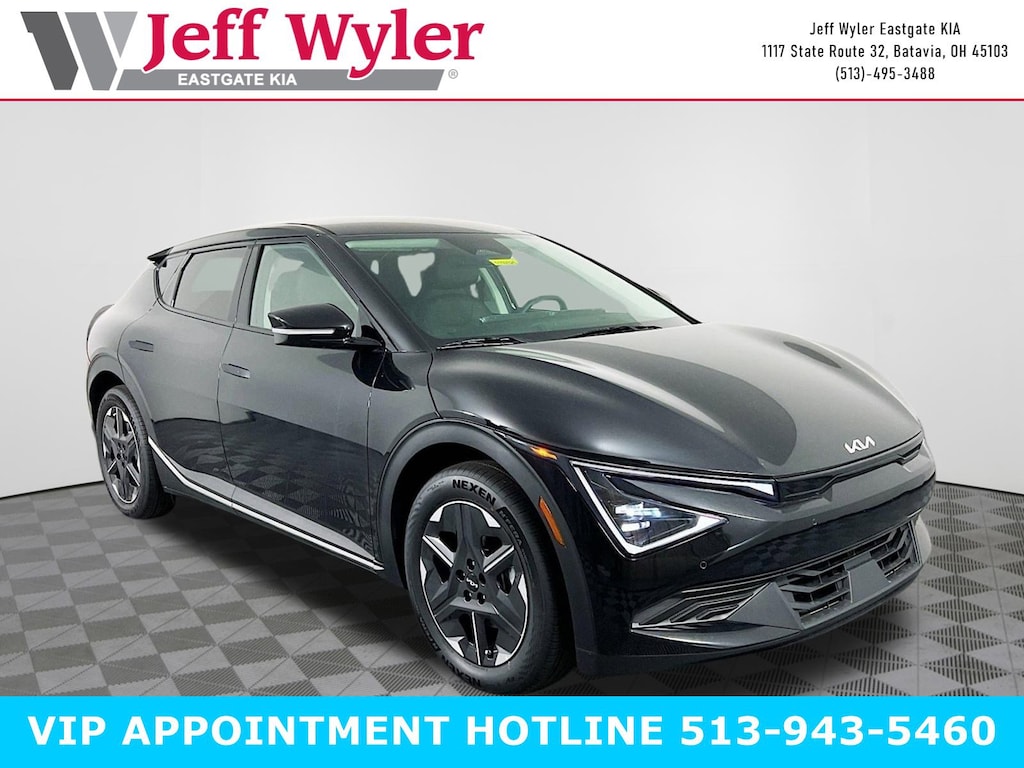 Priced below KBB Fair Purchase Price! Ebony Black 2025 Kia EV6 Light Electric Motor RWD 1-Speed Automatic 128/101 City/Highway MPG Jeff Wyler Eastgate Auto Mall is excited to offer this wonderful-looking 2025 Kia EV6 Light in Ebony Black. Well equipped with: 4-Wheel Disc Brakes, 6 Speakers, ABS brakes, Air Conditioning, Alloy wheels, AM/FM radio: SiriusXM, Apple CarPlay & Android Auto, Auto High-beam Headlights, Auto-dimming Rear-View mirror, Automatic temperature control, Brake assist, Bumpers: body-color, Cargo Cover, Carpeted Floor Mats, Delay-off headlights, Driver door bin, Driver vanity mirror, Dual front impact airbags, Dual front side impact airbags, Electronic Stability Control, Emergency communication system, Four wheel independent suspension, Front anti-roll bar, Front Bucket Seats, Front Center Armrest, Front dual zone A/C, Front reading lights, Fully automatic headlights, Heated door mirrors, Heated front seats, Heated Front Seats (3-Stage), Illuminated entry, Knee airbag, Low tire pressure warning, Navigation system: AVN 5.0 Navigation System, Occupant sensing airbag, Outside temperature display, Overhead airbag, Overhead console, Panic alarm, Passenger door bin, Passenger vanity mirror, Power door mirrors, Power driver seat, Power steering, Power windows, Rain sensing wipers, Rear anti-roll bar, Rear seat center armrest, Rear side impact airbag, Rear window defroster, Recycled Fabric & Vegan Leather Seat Trim, Remote keyless entry, Security system, Speed control, Speed-sensing steering, Split folding rear seat, Spoiler, Steering wheel mounted audio controls, Telescoping steering wheel, Tilt steering wheel, Traction control, Trip computer, Turn signal indicator mirrors, and Variably intermittent wipers. 128/101 City/Highway MPG Price includes: $10000 - Kia Customer Cash. Exp. 03/02/2026