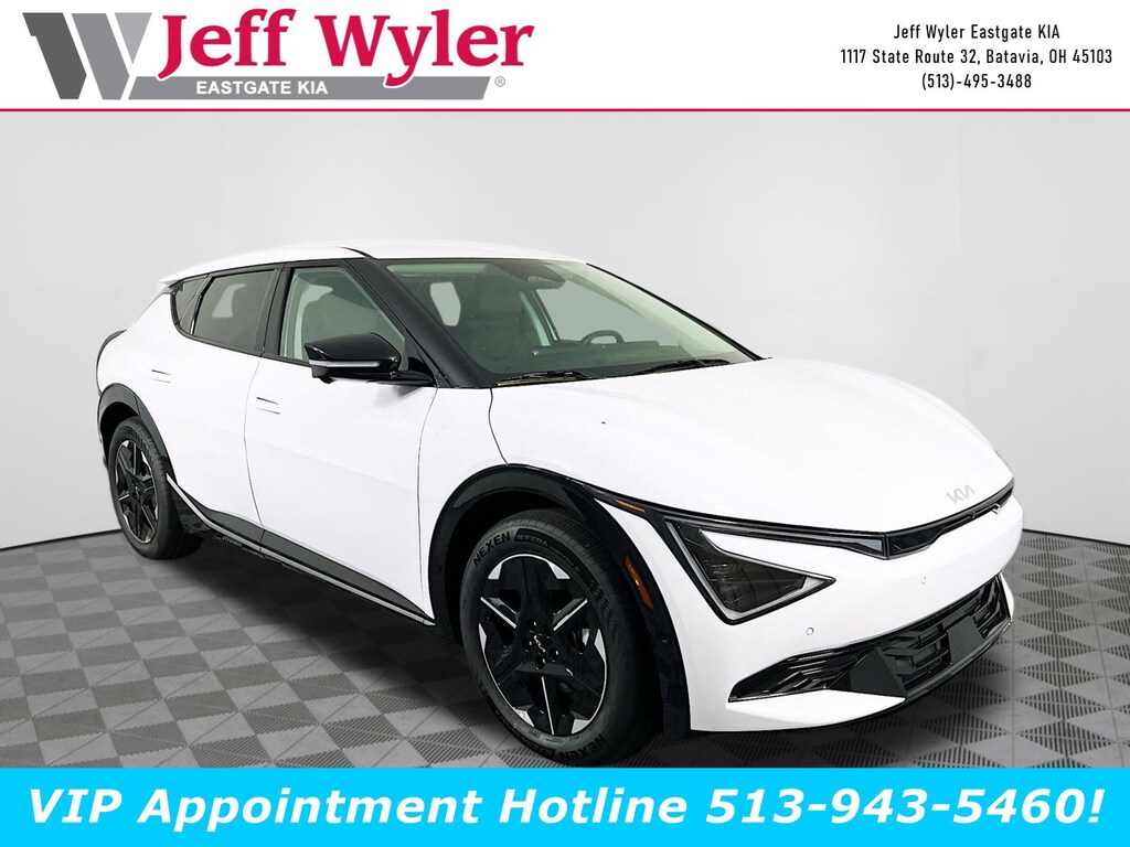 Priced below KBB Fair Purchase Price! Glacier White Pearl 2025 Kia EV6 Wind Electric Motor AWD 1-Speed Automatic 117/95 City/Highway MPG Jeff Wyler Eastgate Auto Mall is delighted to offer this terrific 2025 Kia EV6 Wind in Glacier White Pearl. Well equipped with: 4-Wheel Disc Brakes, 6 Speakers, ABS brakes, Air Conditioning, Alloy wheels, AM/FM radio: SiriusXM, Apple CarPlay & Android Auto, Auto High-beam Headlights, Auto-dimming Rear-View mirror, Automatic temperature control, Brake assist, Bumpers: body-color, Cargo Cover, Carpeted Floor Mats, Delay-off headlights, Driver door bin, Driver vanity mirror, Dual front impact airbags, Dual front side impact airbags, Electronic Stability Control, Emergency communication system, Four wheel independent suspension, Front anti-roll bar, Front Bucket Seats, Front Center Armrest, Front dual zone A/C, Front reading lights, Fully automatic headlights, Heated & Ventilated Front Seats (3-Stage), Heated door mirrors, Heated front seats, Heated rear seats, Heated steering wheel, Illuminated entry, Knee airbag, Low tire pressure warning, Memory seat, Navigation system: AVN 5.0 Navigation System, Occupant sensing airbag, Outside temperature display, Overhead airbag, Overhead console, Panic alarm, Passenger door bin, Passenger vanity mirror, Power door mirrors, Power driver seat, Power Liftgate, Power passenger seat, Power steering, Power windows, Radio: AM/FM/HD Radio/SiriusXM w/Navigation, Rain sensing wipers, Rear anti-roll bar, Rear seat center armrest, Rear side impact airbag, Rear window defroster, Remote keyless entry, Security system, Speed control, Speed-sensing steering, Split folding rear seat, Spoiler, Steering wheel mounted audio controls, Telescoping steering wheel, Tilt steering wheel, Traction control, Trip computer, Turn signal indicator mirrors, Variably intermittent wipers, Vegan Leather Seat Trim, Ventilated front seats, Wheel Locks, and Wheels: 7.5J x 19" Black Painted Alloy. 117/95 City/Highway MPG Price includes: $10000 - Kia Customer Cash. Exp. 02/02/2026