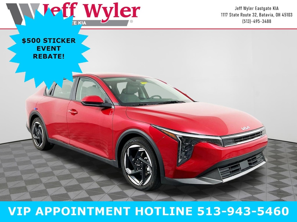 Currant Red 2025 Kia K4 EX 2.0L I4 MPI FWD CVT 29/39 City/Highway MPG Jeff Wyler Eastgate Auto Mall is excited to offer this outstanding-looking 2025 Kia K4 EX in Currant Red. Well equipped with: 4-Wheel Disc Brakes, 6 Speakers, ABS brakes, Air Conditioning, Alloy wheels, AM/FM radio: SiriusXM, Apple CarPlay & Android Auto, Auto High-beam Headlights, Automatic temperature control, Brake assist, Bumpers: body-color, Carpeted Floor Mats, Delay-off headlights, Door Sill Film w/Graphic, Driver door bin, Driver vanity mirror, Dual front impact airbags, Dual front side impact airbags, Electronic Stability Control, Frameless EC Mirror w/Homelink, Front anti-roll bar, Front Bucket Seats, Front Center Armrest, Front dual zone A/C, Front reading lights, Front wheel independent suspension, Fully automatic headlights, Heated door mirrors, Illuminated entry, Low tire pressure warning, Occupant sensing airbag, Outside temperature display, Overhead airbag, Overhead console, Panic alarm, Passenger door bin, Passenger vanity mirror, Power door mirrors, Power steering, Power windows, Radio data system, Radio: 12.3" Touchscreen Audio Display, Rear side impact airbag, Rear window defroster, Remote keyless entry, Security system, Speed control, Split folding rear seat, Steering wheel mounted audio controls, Tachometer, Telescoping steering wheel, Tilt steering wheel, Traction control, Trip computer, Upgraded Cloth Seat Trim, Variably intermittent wipers, and Wheels: 17" x 7.0J Black Machined Alloy. 29/39 City/Highway MPG