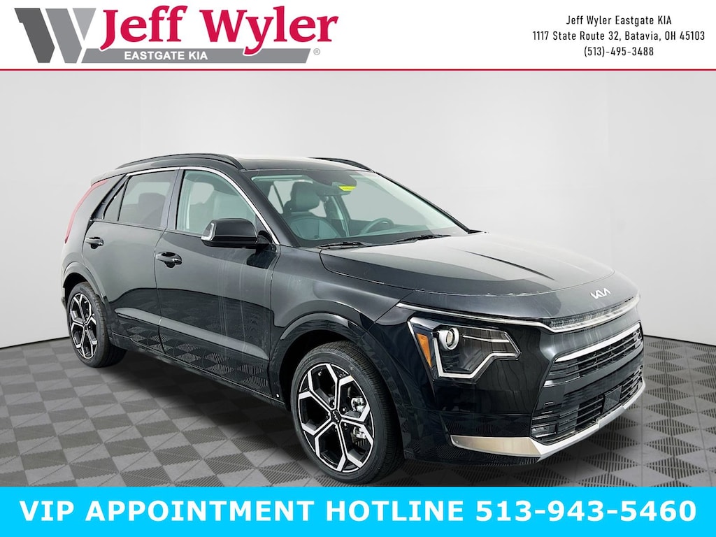 Priced below KBB Fair Purchase Price! Aurora Black Pearl 2025 Kia Niro EX Touring 1.6L I4 DGI Hybrid DOHC 16V LEV3-SULEV30 FWD 6-Speed Dual Clutch 53/45 City/Highway MPG Jeff Wyler Eastgate Auto Mall is proud to offer this gorgeous-looking 2025 Kia Niro EX Touring in Aurora Black Pearl. Well equipped with: 4-Wheel Disc Brakes, 6 Speakers, ABS brakes, Air Conditioning, Alloy wheels, AM/FM radio: SiriusXM, Apple CarPlay & Android Auto, Auto High-beam Headlights, Auto-Dimming Mirror w/HomeLink (Wired), Automatic temperature control, Brake assist, Bumpers: body-color, Carpeted Floor Mats, Cloth & Vegan Leather-Trimmed Seats, Delay-off headlights, Driver door bin, Driver vanity mirror, Dual front impact airbags, Dual front side impact airbags, Electronic Stability Control, Emergency communication system: Kia Connect (includes 1 year free trial), Exterior Parking Camera Rear, Four wheel independent suspension, Front anti-roll bar, Front Bucket Seats, Front Center Armrest, Front dual zone A/C, Front fog lights, Front reading lights, Fully automatic headlights, Heated door mirrors, Heated Front Bucket Seats (3-Steps), Heated front seats, Illuminated entry, Knee airbag, Leather Shift Knob, Low tire pressure warning, Navigation System, Occupant sensing airbag, Outside temperature display, Overhead airbag, Overhead console, Panic alarm, Passenger door bin, Passenger vanity mirror, Power door mirrors, Power driver seat, Power moonroof, Power steering, Power windows, Radio: AM/FM/HD/SiriusXM, Rain sensing wipers, Rear anti-roll bar, Rear seat center armrest, Rear window defroster, Rear window wiper, Remote keyless entry, Security system, Speed control, Speed-sensing steering, Split folding rear seat, Spoiler, Steering wheel mounted audio controls, Telescoping steering wheel, Tilt steering wheel, Traction control, Trip computer, Turn signal indicator mirrors, Variably intermittent wipers, and Wheels: 7.5J x 18" Machine Finished Alloy. 53/45 City/Highway MPG Price includes: $2000 - Kia Customer Cash. Exp. 02/02/2026