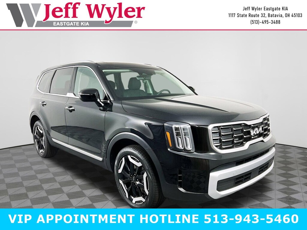 Priced below KBB Fair Purchase Price! Ebony Black 2025 Kia Telluride S 3.8L V6 DOHC AWD 8-Speed Automatic 18/23 City/Highway MPG Jeff Wyler Eastgate Auto Mall is delighted to offer this fantastic 2025 Kia Telluride S in Ebony Black. Well equipped with: 3rd row seats: split-bench, 4-Wheel Disc Brakes, 6 Speakers, ABS brakes, Air Conditioning, All Weather Floor Mats, Alloy wheels, AM/FM radio: SiriusXM, Apple CarPlay & Android Auto, Auto High-beam Headlights, Automatic temperature control, Brake assist, Bumpers: body-color, Delay-off headlights, Driver door bin, Driver vanity mirror, Dual front impact airbags, Dual front side impact airbags, Electronic Stability Control, Emergency communication system: 911 Connect, Exterior Parking Camera Rear, Four wheel independent suspension, Front anti-roll bar, Front Bucket Seats, Front Center Armrest, Front dual zone A/C, Front reading lights, Fully automatic headlights, Heated door mirrors, Heated Front Bucket Seats, Heated front seats, Illuminated entry, Knee airbag, Leather Shift Knob, Leather steering wheel, Low tire pressure warning, Navigation System, Occupant sensing airbag, Outside temperature display, Overhead airbag, Overhead console, Panic alarm, Passenger door bin, Passenger vanity mirror, Power door mirrors, Power driver seat, Power Liftgate, Power moonroof, Power steering, Power windows, Radio data system, Radio: AM/FM Display Audio System, Rear air conditioning, Rear anti-roll bar, Rear audio controls, Rear reading lights, Rear side impact airbag, Rear window defroster, Rear window wiper, Reclining 3rd row seat, Remote keyless entry, Security system, Speed control, Speed-sensing steering, Split folding rear seat, Spoiler, Steering wheel mounted audio controls, SynTex Synthetic Leather Seat Trim, Tachometer, Telescoping steering wheel, Tilt steering wheel, Traction control, Trip computer, Turn signal indicator mirrors, Variably intermittent wipers, and Wheels: 20" x 7.5" Black Finish. Price includes: $2000 - Kia Customer Cash. Exp. 02/02/2026