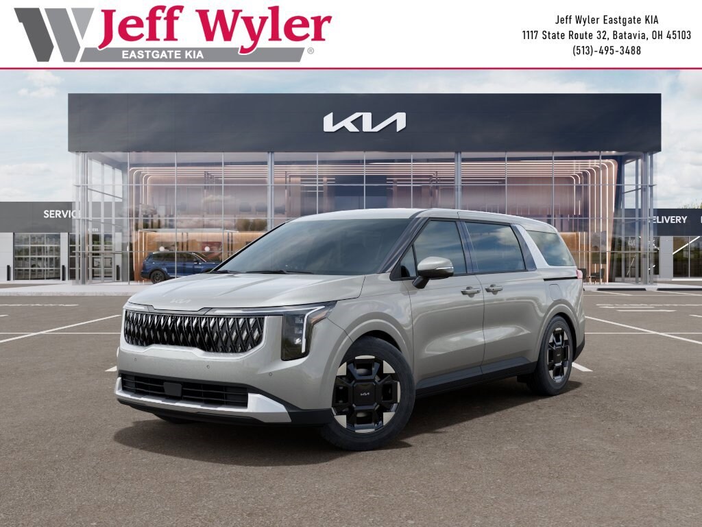 Ivory Silver 2026 Kia Carnival EX V6 FWD 8-Speed Automatic 18/25 City/Highway MPG Jeff Wyler Eastgate Auto Mall is delighted to offer this beautiful-looking 2026 Kia Carnival EX in Ivory Silver. Well equipped with: 3.51 Axle Ratio, 3rd row seats: split-bench, 4-Wheel Disc Brakes, 8 Speakers, ABS brakes, Air Conditioning, All Weather Floor Mats (8-Passenger), Alloy wheels, AM/FM radio: SiriusXM, Apple CarPlay & Android Auto, Artificial Leather Seat Trim, Auto High-beam Headlights, Auto-Dimming Mirror with HomeLink, Automatic temperature control, Brake assist, Bumpers: body-color, Compass, Delay-off headlights, Driver door bin, Driver vanity mirror, Dual front impact airbags, Dual front side impact airbags, Electronic Stability Control, Emergency communication system, Exterior Parking Camera Rear, Four wheel independent suspension, Front anti-roll bar, Front Bucket Seats, Front Center Armrest, Front dual zone A/C, Front reading lights, Fully automatic headlights, Heated door mirrors, Heated Front Bucket Seats, Heated front seats, Illuminated entry, Knee airbag, Leather Shift Knob, Leather steering wheel, Low tire pressure warning, Memory seat, Navigation System, Occupant sensing airbag, Outside temperature display, Overhead airbag, Overhead console, Panic alarm, Passenger door bin, Passenger vanity mirror, Power door mirrors, Power driver seat, Power Liftgate, Power passenger seat, Power steering, Power windows, Radio: AM/FM/HD Audio System, Rear air conditioning, Rear anti-roll bar, Rear reading lights, Rear window defroster, Rear window wiper, Reclining 3rd row seat, Remote keyless entry, Security system, Speed control, Speed-sensing steering, Split folding rear seat, Spoiler, Steering wheel mounted audio controls, Tachometer, Telescoping steering wheel, Tilt steering wheel, Traction control, Trip computer, Turn signal indicator mirrors, Variably intermittent wipers, and Wheels: 7.5J x 19" Machine-Finished Alloy.