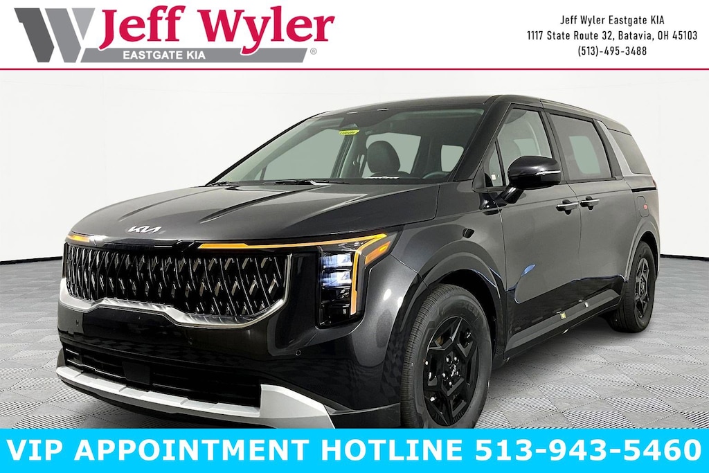 Panthera Metal 2026 Kia Carnival LXS V6 FWD 8-Speed Automatic 18/26 City/Highway MPG Jeff Wyler Eastgate Auto Mall is delighted to offer this gorgeous 2026 Kia Carnival LXS in Panthera Metal. Well equipped with: 3.51 Axle Ratio, 3rd row seats: split-bench, 4-Wheel Disc Brakes, 6 Speakers, 6.5J x 17" Alloy Wheels, ABS brakes, Air Conditioning, Alloy wheels, AM/FM radio: SiriusXM, Apple CarPlay & Android Auto, Artificial Leather Seat Trim, Auto High-beam Headlights, Auto-Dimming Mirror with HomeLink, Automatic temperature control, Brake assist, Bumpers: body-color, Compass, Delay-off headlights, Driver door bin, Driver vanity mirror, Dual front impact airbags, Dual front side impact airbags, Electronic Stability Control, Emergency communication system, Exterior Parking Camera Rear, Four wheel independent suspension, Front anti-roll bar, Front Bucket Seats, Front Center Armrest, Front dual zone A/C, Front reading lights, Fully automatic headlights, Heated door mirrors, Heated Front Bucket Seats, Heated front seats, Illuminated entry, Knee airbag, Leather Shift Knob, Leather steering wheel, Low tire pressure warning, Navigation System, Occupant sensing airbag, Outside temperature display, Overhead airbag, Overhead console, Panic alarm, Passenger door bin, Passenger vanity mirror, Power door mirrors, Power driver seat, Power steering, Power windows, Radio: AM/FM/HD Audio System, Rear air conditioning, Rear anti-roll bar, Rear reading lights, Rear window defroster, Rear window wiper, Reclining 3rd row seat, Remote keyless entry, Security system, Speed control, Speed-sensing steering, Split folding rear seat, Spoiler, Steering wheel mounted audio controls, Tachometer, Telescoping steering wheel, Tilt steering wheel, Traction control, Trip computer, Turn signal indicator mirrors, and Variably intermittent wipers. 18/26 City/Highway MPG