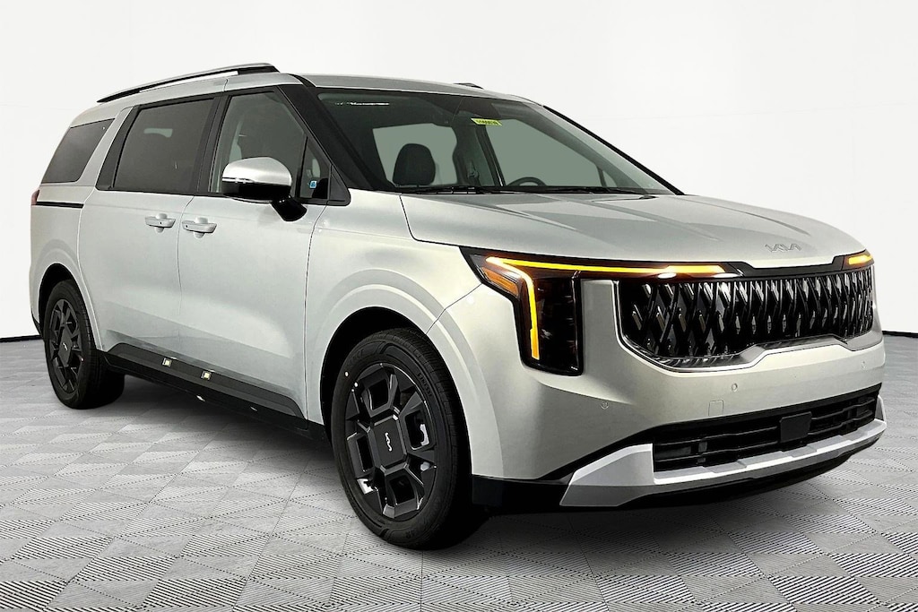 Ivory Silver 2026 Kia Carnival Hybrid EX 1.6L I4 DGI Hybrid Turbocharged DOHC 16V LEV3-SULEV30 FWD 6-Speed Automatic 34/31 City/Highway MPG Jeff Wyler Eastgate Auto Mall is pumped up to offer this attractive 2026 Kia Carnival Hybrid EX in Ivory Silver. Well equipped with: 3rd row seats: split-bench, 4-Wheel Disc Brakes, 8 Speakers, ABS brakes, Air Conditioning, All Weather Floor Mats (8-Passenger), Alloy wheels, AM/FM radio: SiriusXM, Apple CarPlay & Android Auto, Artificial Leather Seat Trim, Auto High-beam Headlights, Auto-Dimming Mirror with HomeLink, Automatic temperature control, Brake assist, Bumpers: body-color, Compass, Delay-off headlights, Driver door bin, Driver vanity mirror, Dual front impact airbags, Dual front side impact airbags, Electronic Stability Control, Emergency communication system, Exterior Parking Camera Rear, Four wheel independent suspension, Front anti-roll bar, Front Bucket Seats, Front Center Armrest, Front dual zone A/C, Front reading lights, Fully automatic headlights, Heated door mirrors, Heated Front Bucket Seats, Heated front seats, Illuminated entry, Knee airbag, Leather Shift Knob, Leather steering wheel, Low tire pressure warning, Memory seat, Navigation System, Occupant sensing airbag, Outside temperature display, Overhead airbag, Overhead console, Panic alarm, Passenger door bin, Passenger vanity mirror, Power door mirrors, Power driver seat, Power Liftgate, Power passenger seat, Power steering, Power windows, Radio: : Navigation System with SiriusXM, Rear air conditioning, Rear anti-roll bar, Rear reading lights, Rear window defroster, Rear window wiper, Reclining 3rd row seat, Remote keyless entry, Security system, Speed control, Speed-sensing steering, Split folding rear seat, Spoiler, Steering wheel mounted audio controls, Tachometer, Telescoping steering wheel, Tilt steering wheel, Traction control, Trip computer, Turn signal indicator mirrors, Variably intermittent wipers, and Wheels: 19" Black Alloy. 34/31 City/Highway MPG