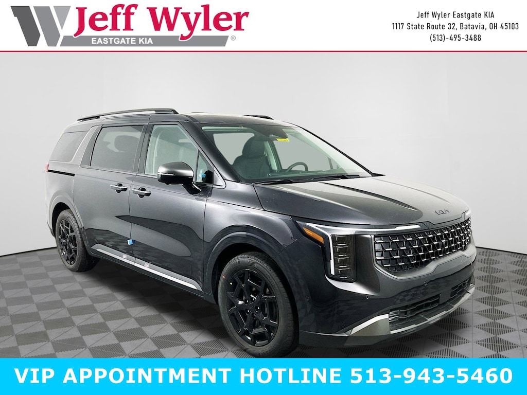 Panthera Metal 2026 Kia Carnival Hybrid SX Prestige 1.6L I4 DGI Hybrid Turbocharged DOHC 16V LEV3-SULEV30 FWD 6-Speed Automatic 34/31 City/Highway MPG Jeff Wyler Eastgate Auto Mall is proud to offer this fantastic 2026 Kia Carnival Hybrid SX Prestige in Panthera Metal. Well equipped with: SX Prestige Seat Package (2nd Row Laminated Windows, Ambient Lighting, Heated/Ventilated 2nd Row Power Vip Lounge Seats, and High Glossy Interior Trim), 12 Speakers, 3rd row seats: split-bench, 4-Wheel Disc Brakes, ABS brakes, Air Conditioning, Alloy wheels, AM/FM radio: SiriusXM, Apple CarPlay & Android Auto, Auto High-beam Headlights, Auto-dimming Rear-View mirror, Automatic temperature control, Brake assist, Bumpers: body-color, Compass, Delay-off headlights, Driver door bin, Driver vanity mirror, Dual front impact airbags, Dual front side impact airbags, Electronic Stability Control, Emergency communication system, Exterior Parking Camera Rear, Four wheel independent suspension, Front anti-roll bar, Front Bucket Seats, Front Center Armrest, Front dual zone A/C, Front fog lights, Front reading lights, Fully automatic headlights, Garage door transmitter: HomeLink, Heads-Up Display, Heated and Ventilated Front Bucket Seats, Heated door mirrors, Heated front seats, Heated steering wheel, Illuminated entry, Knee airbag, Leather Seat Trim, Leather Shift Knob, Leather steering wheel, Low tire pressure warning, Memory seat, Navigation System, Occupant sensing airbag, Outside temperature display, Overhead airbag, Overhead console, Panic alarm, Passenger door bin, Passenger vanity mirror, Power 2nd-Row Moonroof, Power door mirrors, Power driver seat, Power Liftgate, Power moonroof, Power passenger seat, Power steering, Power windows, Radio: : Navigation System with SiriusXM, Rain sensing wipers, Rear air conditioning, Rear anti-roll bar, Rear reading lights, Rear window defroster, Rear window wiper, Reclining 3rd row seat, Remote keyless entry, Security system, Speed control, Speed-sensing steering, Split folding rear seat, Spoiler, Steering wheel mounted audio controls, Tachometer, Telescoping steering wheel, Tilt steering wheel, Traction control, Trip computer, Turn signal indicator mirrors, Variably intermittent wipers, Ventilated front seats, and Wheels: 19" Black D-Cut Customizing. 34/31 City/Highway MPG