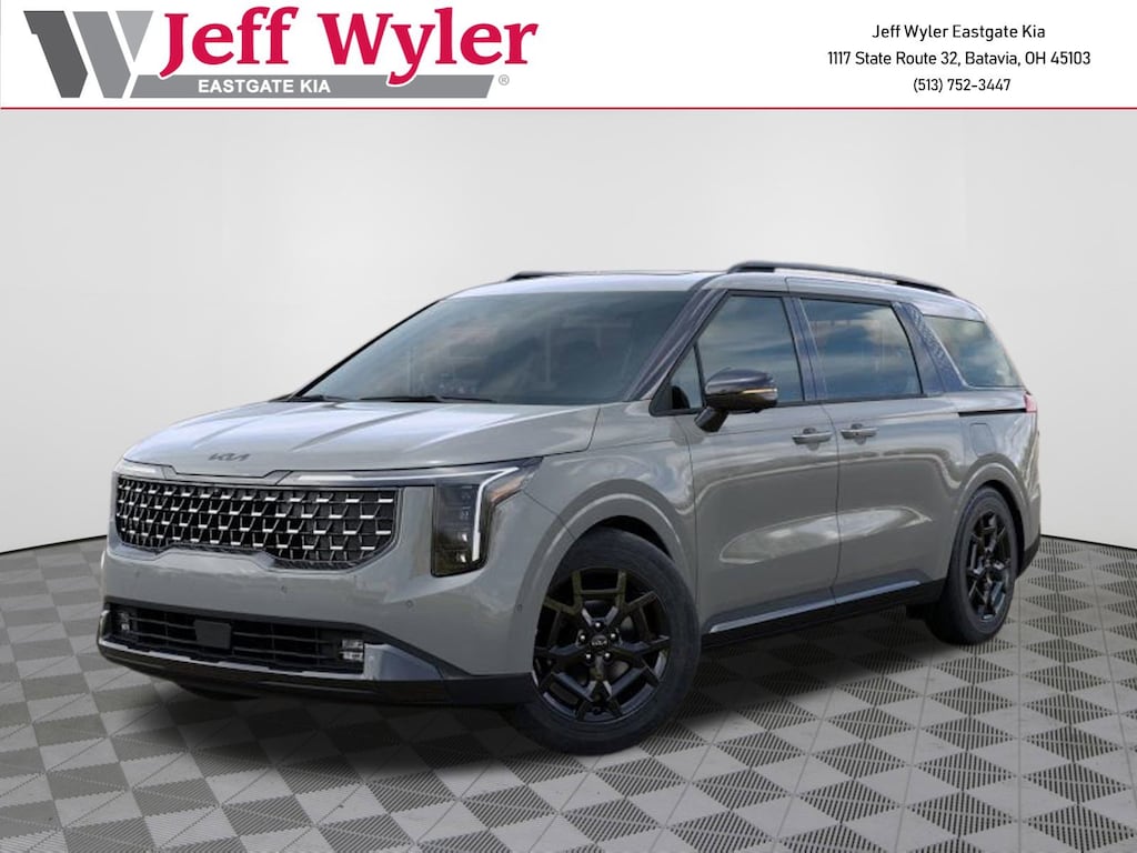 Ceramic Silver 2026 Kia Carnival Hybrid SX Prestige 1.6L I4 DGI Hybrid Turbocharged DOHC 16V LEV3-SULEV30 FWD 6-Speed Automatic 34/31 City/Highway MPG Jeff Wyler Eastgate Auto Mall is delighted to offer this beautiful 2026 Kia Carnival Hybrid SX Prestige in Ceramic Silver. Well equipped with: 12 Speakers, 3rd row seats: split-bench, 4-Wheel Disc Brakes, ABS brakes, Air Conditioning, All Weather Floor Mats (8-Passenger), Alloy wheels, AM/FM radio: SiriusXM, Apple CarPlay & Android Auto, Auto High-beam Headlights, Auto-dimming Rear-View mirror, Automatic temperature control, Brake assist, Bumpers: body-color, Compass, Delay-off headlights, Driver door bin, Driver vanity mirror, Dual front impact airbags, Dual front side impact airbags, Electronic Stability Control, Emergency communication system, Exterior Parking Camera Rear, Four wheel independent suspension, Front anti-roll bar, Front Bucket Seats, Front Center Armrest, Front dual zone A/C, Front fog lights, Front reading lights, Fully automatic headlights, Garage door transmitter: HomeLink, Heads-Up Display, Heated & Ventilated Front Bucket Seats, Heated door mirrors, Heated front seats, Heated steering wheel, Illuminated entry, Knee airbag, Leather Seat Trim, Leather Shift Knob, Leather steering wheel, Low tire pressure warning, Memory seat, Navigation System, Occupant sensing airbag, Outside temperature display, Overhead airbag, Overhead console, Panic alarm, Passenger door bin, Passenger vanity mirror, Power 2nd-Row Moonroof, Power door mirrors, Power driver seat, Power Liftgate, Power moonroof, Power passenger seat, Power steering, Power windows, Radio: Navigation System w/SiriusXM, Rain sensing wipers, Rear air conditioning, Rear anti-roll bar, Rear reading lights, Rear window defroster, Rear window wiper, Reclining 3rd row seat, Remote keyless entry, Security system, Speed control, Speed-sensing steering, Split folding rear seat, Spoiler, Steering wheel mounted audio controls, Tachometer, Telescoping steering wheel, Tilt steering wheel, Traction control, Trip computer, Turn signal indicator mirrors, Variably intermittent wipers, Ventilated front seats, and Wheels: 19" Black D-Cut Customizing. 34/31 City/Highway MPG