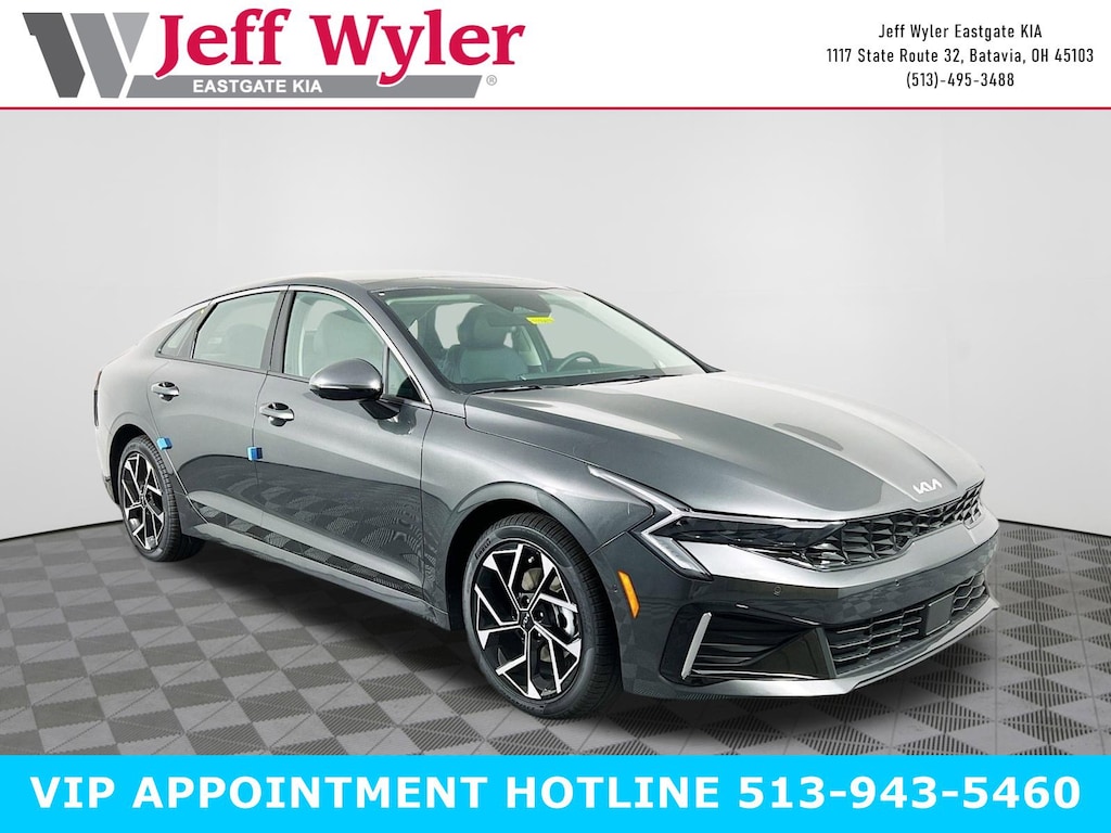 Priced below KBB Fair Purchase Price! Interstellar Gray 2026 Kia K5 EX I4 FWD 8-Speed Automatic 25/36 City/Highway MPG Jeff Wyler Eastgate Auto Mall is pleased to offer this beautiful 2026 Kia K5 EX in Interstellar Gray. Well equipped with: 12 Speakers, 4-Wheel Disc Brakes, ABS brakes, Air Conditioning, Alloy wheels, AM/FM radio: SiriusXM, Auto High-beam Headlights, Automatic temperature control, Brake assist, Bumpers: body-color, Delay-off headlights, Driver door bin, Driver vanity mirror, Dual front impact airbags, Dual front side impact airbags, Electronic Stability Control, Emergency communication system: Kia Connect (includes 1 year free trial), Four wheel independent suspension, Front anti-roll bar, Front Bucket Seats, Front Center Armrest, Front dual zone A/C, Front reading lights, Fully automatic headlights, Heated and Ventilated Front Bucket Seats, Heated door mirrors, Heated front seats, Heated steering wheel, Illuminated entry, Knee airbag, Leather Shift Knob, Leather steering wheel, Low tire pressure warning, Memory seat, Navigation System, Occupant sensing airbag, Outside temperature display, Overhead airbag, Overhead console, Panic alarm, Passenger door bin, Passenger vanity mirror, Power door mirrors, Power driver seat, Power moonroof, Power passenger seat, Power steering, Power windows, Radio data system, Radio: AM/FM Audio System, Rear anti-roll bar, Rear reading lights, Rear seat center armrest, Rear side impact airbag, Rear window defroster, Remote keyless entry, Security system, Speed control, Speed-sensing steering, Split folding rear seat, Steering wheel mounted audio controls, SynTex Seat Trim, Tachometer, Telescoping steering wheel, Tilt steering wheel, Traction control, Trip computer, Turn signal indicator mirrors, Variably intermittent wipers, Ventilated front seats, and Wheels: 18" x 7.5J Gloss Black Machined Finish Alloy. 25/36 City/Highway MPG