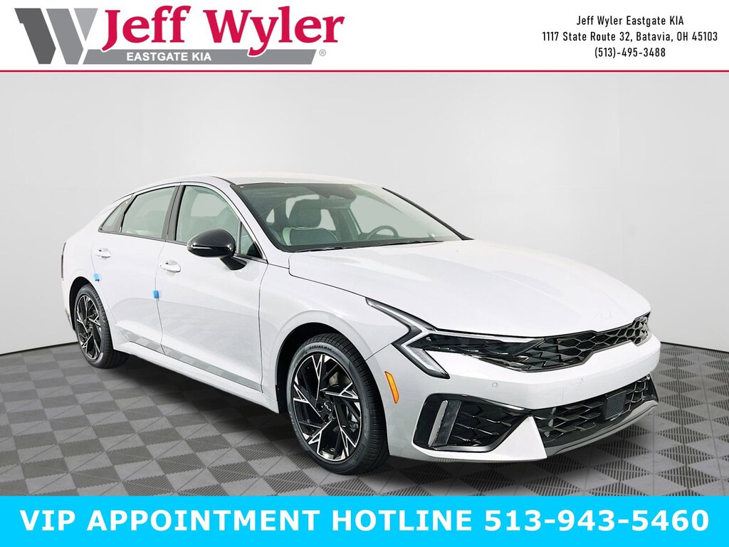 Wolf Gray 2026 Kia K5 GT-Line I4 AWD 8-Speed Automatic 24/33 City/Highway MPG Jeff Wyler Eastgate Auto Mall is pleased to offer this wonderful 2026 Kia K5 GT-Line in Wolf Gray. Well equipped with: 4-Wheel Disc Brakes, 6 Speakers, ABS brakes, Air Conditioning, Alloy wheels, AM/FM radio: SiriusXM, Apple CarPlay & Android Auto, Auto High-beam Headlights, Automatic temperature control, Brake assist, Bumpers: body-color, Cargo Mat, Cargo Net, Carpeted Floor Mats, Delay-off headlights, Driver door bin, Driver vanity mirror, Dual front impact airbags, Dual front side impact airbags, Electronic Stability Control, Emergency communication system: Kia Connect (includes 1 year free trial), Four wheel independent suspension, Front anti-roll bar, Front Bucket Seats, Front Center Armrest, Front dual zone A/C, Front fog lights, Front reading lights, Fully automatic headlights, Heated door mirrors, Heated Front Bucket Seats, Heated front seats, Heated steering wheel, Illuminated entry, Knee airbag, Leather Shift Knob, Leather steering wheel, Low tire pressure warning, Navigation System, Occupant sensing airbag, Outside temperature display, Overhead airbag, Overhead console, Panic alarm, Passenger door bin, Passenger vanity mirror, Power door mirrors, Power driver seat, Power steering, Power windows, Radio data system, Radio: AM/FM Audio System, Rear anti-roll bar, Rear seat center armrest, Rear side impact airbag, Rear window defroster, Remote keyless entry, Security system, Speed control, Speed-sensing steering, Split folding rear seat, Sport steering wheel, Steering wheel mounted audio controls, Tachometer, Telescoping steering wheel, Tilt steering wheel, Traction control, Trip computer, Turn signal indicator mirrors, Variably intermittent wipers, and Wheels: 18" x 7.5J Gloss Black Machined Finish Alloy. 24/33 City/Highway MPG