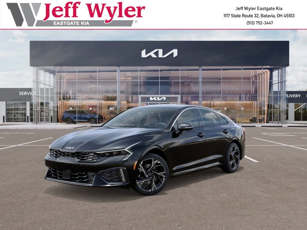 Aurora Black 2026 Kia K5 GT-Line I4 FWD 8-Speed Automatic 25/36 City/Highway MPG Jeff Wyler Eastgate Auto Mall is delighted to offer this good-looking 2026 Kia K5 GT-Line in Aurora Black. Well equipped with: 4-Wheel Disc Brakes, 6 Speakers, ABS brakes, Air Conditioning, Alloy wheels, AM/FM radio: SiriusXM, Auto High-beam Headlights, Auto-Dimming Mirror w/HomeLink, Automatic temperature control, Brake assist, Bumpers: body-color, Delay-off headlights, Driver door bin, Driver vanity mirror, Dual front impact airbags, Dual front side impact airbags, Electronic Stability Control, Emergency communication system: Kia Connect (includes 1 year free trial), Four wheel independent suspension, Front anti-roll bar, Front Bucket Seats, Front Center Armrest, Front dual zone A/C, Front fog lights, Front reading lights, Fully automatic headlights, Heated door mirrors, Heated Front Bucket Seats, Heated front seats, Heated steering wheel, Illuminated entry, Knee airbag, Leather Shift Knob, Leather steering wheel, Low tire pressure warning, Navigation System, Occupant sensing airbag, Outside temperature display, Overhead airbag, Overhead console, Panic alarm, Passenger door bin, Passenger vanity mirror, Power door mirrors, Power driver seat, Power steering, Power windows, Radio data system, Radio: AM/FM Audio System, Rear anti-roll bar, Rear seat center armrest, Rear side impact airbag, Rear window defroster, Remote keyless entry, Security system, Speed control, Speed-sensing steering, Split folding rear seat, Sport steering wheel, Steering wheel mounted audio controls, Tachometer, Telescoping steering wheel, Tilt steering wheel, Traction control, Trip computer, Turn signal indicator mirrors, Variably intermittent wipers, and Wheels: 18" x 7.5J Gloss Black Machined Finish Alloy. 25/36 City/Highway MPG