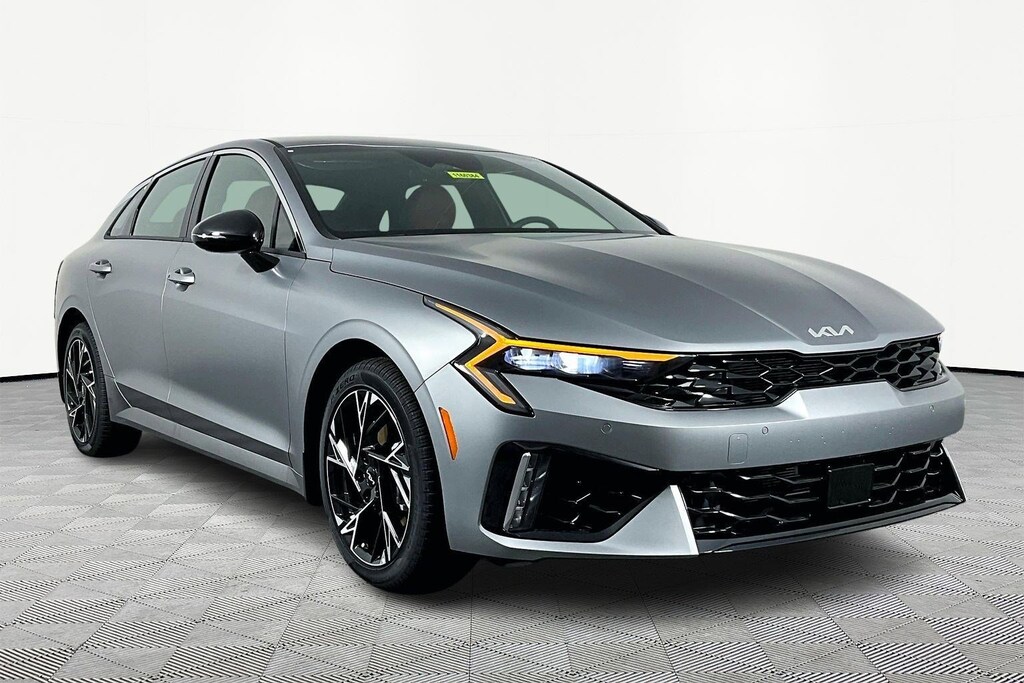 Steel Matte Gray 2026 Kia K5 GT-Line I4 FWD 8-Speed Automatic 25/36 City/Highway MPG Jeff Wyler Eastgate Auto Mall is pleased to offer this attractive 2026 Kia K5 GT-Line in Steel Matte Gray. Well equipped with: GT-Line Red Interior Package (SynTex Seat Trim), 4-Wheel Disc Brakes, 6 Speakers, ABS brakes, Air Conditioning, Alloy wheels, AM/FM radio: SiriusXM, Auto High-beam Headlights, Auto-Dimming Mirror with HomeLink, Automatic temperature control, Brake assist, Bumpers: body-color, Carpeted Floor Mats, Delay-off headlights, Driver door bin, Driver vanity mirror, Dual front impact airbags, Dual front side impact airbags, Electronic Stability Control, Emergency communication system: Kia Connect (includes 1 year free trial), Four wheel independent suspension, Front anti-roll bar, Front Bucket Seats, Front Center Armrest, Front dual zone A/C, Front fog lights, Front reading lights, Fully automatic headlights, Heated door mirrors, Heated Front Bucket Seats, Heated front seats, Illuminated entry, Knee airbag, Leather Shift Knob, Leather steering wheel, Low tire pressure warning, Mud Guards, Navigation System, Occupant sensing airbag, Outside temperature display, Overhead airbag, Overhead console, Panic alarm, Passenger door bin, Passenger vanity mirror, Power door mirrors, Power driver seat, Power steering, Power windows, Radio data system, Radio: AM/FM Audio System, Rear anti-roll bar, Rear seat center armrest, Rear side impact airbag, Rear window defroster, Remote keyless entry, Security system, Speed control, Speed-sensing steering, Split folding rear seat, Sport steering wheel, Steering wheel mounted audio controls, Tachometer, Telescoping steering wheel, Tilt steering wheel, Traction control, Trip computer, Turn signal indicator mirrors, Variably intermittent wipers, Wheel Locks, and Wheels: 18" x 7.5J Gloss Black Machined Finish Alloy. 25/36 City/Highway MPG