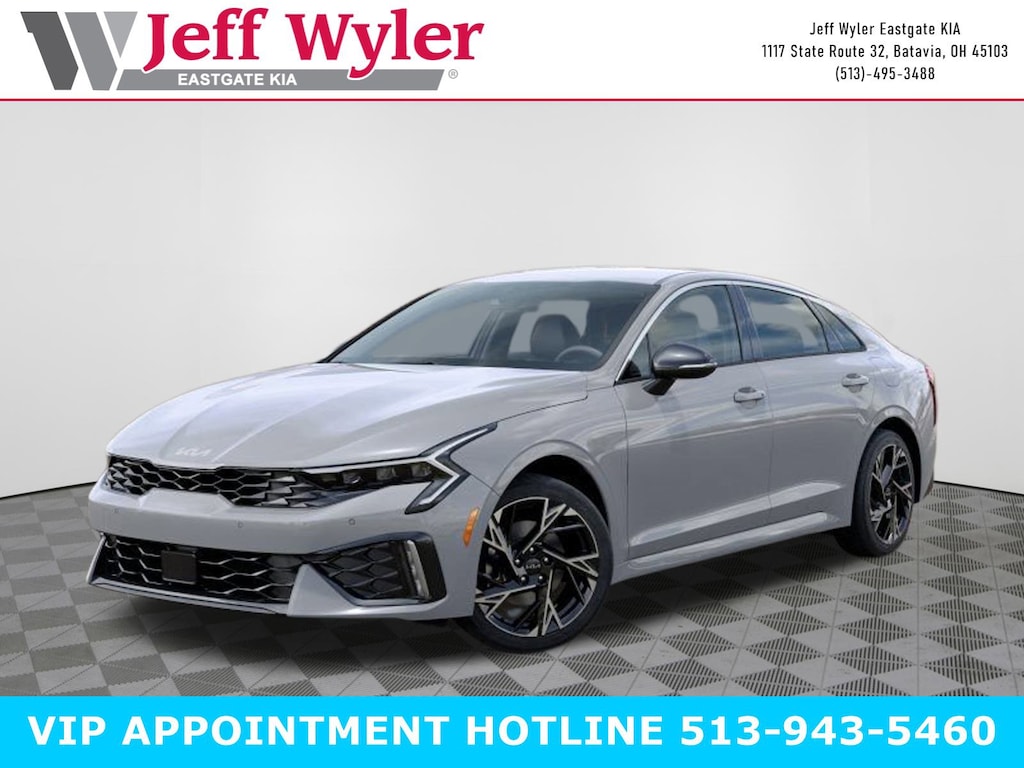 Wolf Gray 2026 Kia K5 GT-Line I4 FWD 8-Speed Automatic 25/36 City/Highway MPG Jeff Wyler Eastgate Auto Mall is excited to offer this good-looking 2026 Kia K5 GT-Line in Wolf Gray. Well equipped with: GT-Line Red Interior Package (SynTex Seat Trim), 4-Wheel Disc Brakes, 6 Speakers, ABS brakes, Air Conditioning, Alloy wheels, AM/FM radio: SiriusXM, Auto High-beam Headlights, Automatic temperature control, Brake assist, Bumpers: body-color, Delay-off headlights, Driver door bin, Driver vanity mirror, Dual front impact airbags, Dual front side impact airbags, Electronic Stability Control, Emergency communication system: Kia Connect (includes 1 year free trial), Four wheel independent suspension, Front anti-roll bar, Front Bucket Seats, Front Center Armrest, Front dual zone A/C, Front fog lights, Front reading lights, Fully automatic headlights, Heated door mirrors, Heated Front Bucket Seats, Heated front seats, Heated steering wheel, Illuminated entry, Knee airbag, Leather Shift Knob, Leather steering wheel, Low tire pressure warning, Navigation System, Occupant sensing airbag, Outside temperature display, Overhead airbag, Overhead console, Panic alarm, Passenger door bin, Passenger vanity mirror, Power door mirrors, Power driver seat, Power steering, Power windows, Radio data system, Radio: AM/FM Audio System, Rear anti-roll bar, Rear seat center armrest, Rear side impact airbag, Rear window defroster, Remote keyless entry, Security system, Speed control, Speed-sensing steering, Split folding rear seat, Sport steering wheel, Steering wheel mounted audio controls, Tachometer, Telescoping steering wheel, Tilt steering wheel, Traction control, Trip computer, Turn signal indicator mirrors, Variably intermittent wipers, and Wheels: 18" x 7.5J Gloss Black Machined Finish Alloy. 25/36 City/Highway MPG