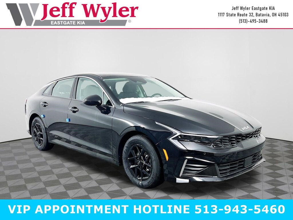 Aurora Black Pearl 2026 Kia K5 LXS I4 FWD 8-Speed Automatic 26/37 City/Highway MPG Jeff Wyler Eastgate Auto Mall is excited to offer this outstanding 2026 Kia K5 LXS in Aurora Black Pearl. Well equipped with: 4-Wheel Disc Brakes, 6 Speakers, ABS brakes, Air Conditioning, Alloy wheels, AM/FM radio: SiriusXM, Auto High-beam Headlights, Automatic temperature control, Brake assist, Bumpers: body-color, Carpeted Floor Mats, Cloth Seat Trim, Delay-off headlights, Driver door bin, Driver vanity mirror, Dual front impact airbags, Dual front side impact airbags, Electronic Stability Control, Emergency communication system: Kia Connect (includes 1 year free trial), Four wheel independent suspension, Front anti-roll bar, Front Bucket Seats, Front Center Armrest, Front dual zone A/C, Front reading lights, Fully automatic headlights, Heated door mirrors, Illuminated entry, Knee airbag, Low tire pressure warning, Occupant sensing airbag, Outside temperature display, Overhead airbag, Overhead console, Panic alarm, Passenger door bin, Passenger vanity mirror, Power door mirrors, Power steering, Power windows, Radio data system, Radio: AM/FM Audio System, Rear anti-roll bar, Rear seat center armrest, Rear side impact airbag, Rear window defroster, Remote keyless entry, Security system, Speed control, Speed-sensing steering, Split folding rear seat, Steering wheel mounted audio controls, Tachometer, Telescoping steering wheel, Tilt steering wheel, Traction control, Trip computer, Variably intermittent wipers, and Wheels: 16" x 6.5J Gloss Black Alloy. 26/37 City/Highway MPG