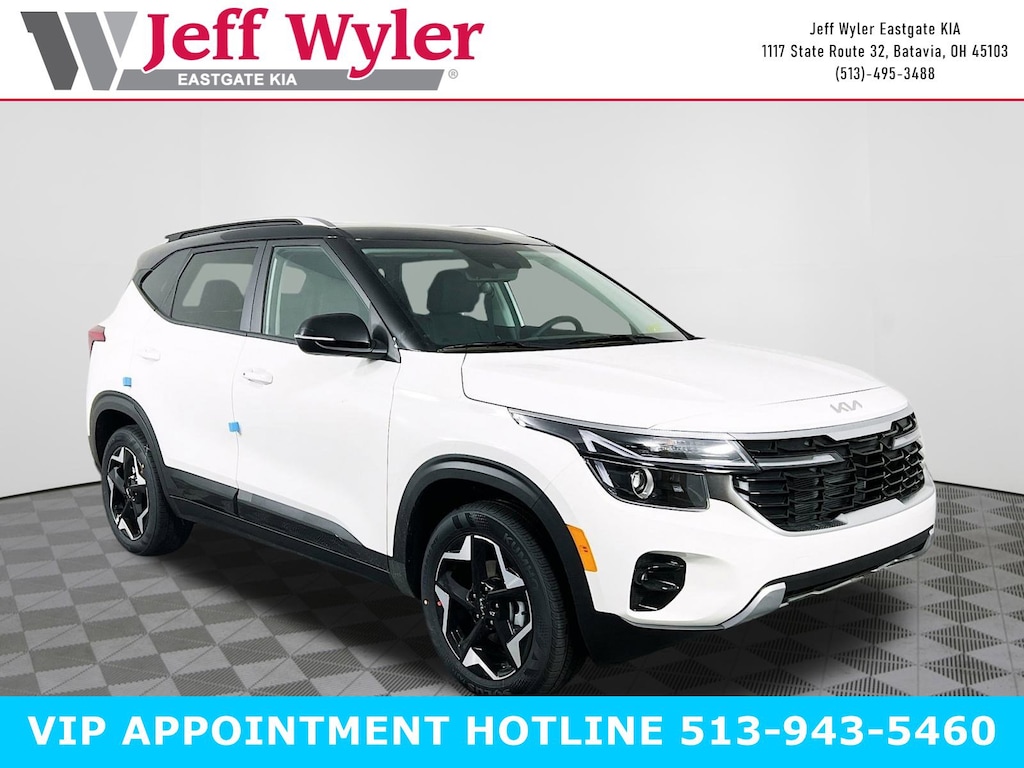 Clear White/Black Roof 2026 Kia Seltos S 2.0L I4 MPI FWD CVT 28/34 City/Highway MPG Jeff Wyler Eastgate Auto Mall is honored to offer this fantastic-looking 2026 Kia Seltos S in Clear White/Black Roof. Well equipped with: Glossy Black Door Garnish Package (Glossy Black Door Garnish), 4-Wheel Disc Brakes, 6 Speakers, ABS brakes, Air Conditioning, Alloy wheels, AM/FM radio: SiriusXM, Apple CarPlay & Android Auto, Auto Dimming Mirror with HomeLink, Auto High-beam Headlights, Automatic temperature control, Brake assist, Bumpers: body-color, Carpet Floor Mats, Cloth & Artificial Leather Seat Trim, Delay-off headlights, Driver door bin, Driver vanity mirror, Dual front impact airbags, Dual front side impact airbags, Electronic Stability Control, Emergency communication system: 911 Connect, Exterior Parking Camera Rear, Front anti-roll bar, Front Bucket Seats, Front Center Armrest, Front fog lights, Front reading lights, Front wheel independent suspension, Fully automatic headlights, Heated door mirrors, Illuminated entry, Leather Shift Knob, Leather steering wheel, Low tire pressure warning, Navigation System, Occupant sensing airbag, Outside temperature display, Overhead airbag, Overhead console, Panic alarm, Passenger door bin, Passenger vanity mirror, Power door mirrors, Power steering, Power windows, Radio: AM/FM/HD/Satellite Display System with Navigation, Rear seat center armrest, Rear window defroster, Rear window wiper, Remote keyless entry, Security system, Speed control, Speed-sensing steering, Split folding rear seat, Spoiler, Steering wheel mounted audio controls, Tachometer, Telescoping steering wheel, Tilt steering wheel, Traction control, Trip computer, Turn signal indicator mirrors, Variably intermittent wipers, and Wheels: 17" Alloy with Machined Finished. 28/34 City/Highway MPG