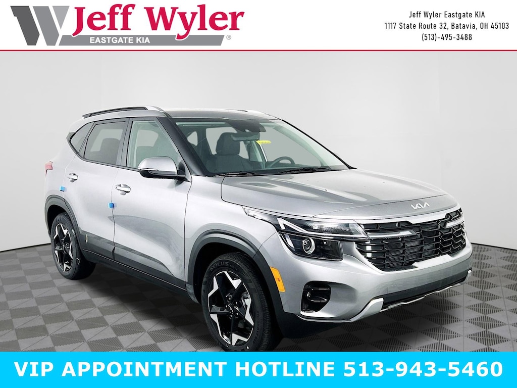 Steel Gray 2026 Kia Seltos S 2.0L I4 MPI FWD CVT 28/34 City/Highway MPG Jeff Wyler Eastgate Auto Mall is proud to offer this good-looking 2026 Kia Seltos S in Steel Gray. Well equipped with: 4-Wheel Disc Brakes, 6 Speakers, ABS brakes, Air Conditioning, Alloy wheels, AM/FM radio: SiriusXM, Apple CarPlay & Android Auto, Auto High-beam Headlights, Automatic temperature control, Brake assist, Bumpers: body-color, Carpet Floor Mats, Cloth & Artificial Leather Seat Trim, Delay-off headlights, Driver door bin, Driver vanity mirror, Dual front impact airbags, Dual front side impact airbags, Electronic Stability Control, Emergency communication system: 911 Connect, Exterior Parking Camera Rear, Front anti-roll bar, Front Bucket Seats, Front Center Armrest, Front fog lights, Front reading lights, Front wheel independent suspension, Fully automatic headlights, Heated door mirrors, Illuminated entry, Leather Shift Knob, Leather steering wheel, Low tire pressure warning, Navigation System, Occupant sensing airbag, Outside temperature display, Overhead airbag, Overhead console, Panic alarm, Passenger door bin, Passenger vanity mirror, Power door mirrors, Power steering, Power windows, Radio: AM/FM/HD/Satellite Display System with Navigation, Rear seat center armrest, Rear window defroster, Rear window wiper, Remote keyless entry, Security system, Speed control, Speed-sensing steering, Split folding rear seat, Spoiler, Steering wheel mounted audio controls, Tachometer, Telescoping steering wheel, Tilt steering wheel, Traction control, Trip computer, Turn signal indicator mirrors, Variably intermittent wipers, and Wheels: 17" Alloy with Machined Finished. 28/34 City/Highway MPG