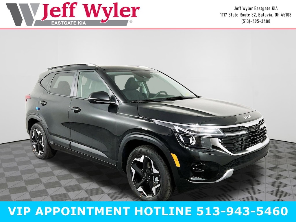 Fusion Black 2026 Kia Seltos S 2.0L I4 MPI FWD CVT 28/34 City/Highway MPG Jeff Wyler Eastgate Auto Mall is pumped up to offer this great 2026 Kia Seltos S in Fusion Black. Well equipped with: 4-Wheel Disc Brakes, 6 Speakers, ABS brakes, Air Conditioning, Alloy wheels, AM/FM radio: SiriusXM, Apple CarPlay & Android Auto, Auto High-beam Headlights, Auto-Dimming Mirror w/HomeLink, Automatic temperature control, Brake assist, Bumpers: body-color, Cloth & Artificial Leather Seat Trim, Delay-off headlights, Driver door bin, Driver vanity mirror, Dual front impact airbags, Dual front side impact airbags, Electronic Stability Control, Emergency communication system: 911 Connect, Exterior Parking Camera Rear, Front anti-roll bar, Front Bucket Seats, Front Center Armrest, Front fog lights, Front reading lights, Front wheel independent suspension, Fully automatic headlights, Heated door mirrors, Illuminated entry, Leather Shift Knob, Leather steering wheel, Low tire pressure warning, Navigation System, Occupant sensing airbag, Outside temperature display, Overhead airbag, Overhead console, Panic alarm, Passenger door bin, Passenger vanity mirror, Power door mirrors, Power steering, Power windows, Radio: AM/FM/HD/Satellite Display System w/Navigation, Rear seat center armrest, Rear window defroster, Rear window wiper, Remote keyless entry, Security system, Speed control, Speed-sensing steering, Split folding rear seat, Spoiler, Steering wheel mounted audio controls, Tachometer, Telescoping steering wheel, Tilt steering wheel, Traction control, Trip computer, Turn signal indicator mirrors, Variably intermittent wipers, and Wheels: 17" Alloy w/Machined Finished. 28/34 City/Highway MPG