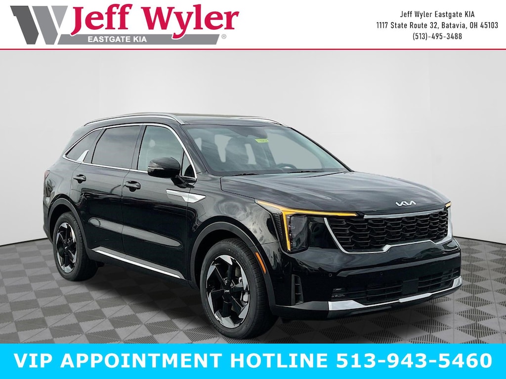 Priced below KBB Fair Purchase Price! Aurora Black Pearl 2026 Kia Sorento Hybrid EX 1.6L Turbo GDI 4-Cylinder AWD 6-Speed Automatic 32/35 City/Highway MPG Jeff Wyler Eastgate Auto Mall is pleased to offer this beautiful-looking 2026 Kia Sorento Hybrid EX in Aurora Black Pearl. Well equipped with: EX Premium Package (2nd Row Captain's Chairs, Full-Length One-Touch Panoroof with Sliding Sunshade, LED Interior Lighting, and Radio: AM/FM Bose Premium Audio System), 3rd row seats: split-bench, 4-Wheel Disc Brakes, 6 Speakers, ABS brakes, Air Conditioning, All Weather Floor Mats, Alloy wheels, AM/FM radio: SiriusXM, Apple CarPlay & Android Auto, Auto High-beam Headlights, Auto-Dimming Mirror with HomeLink, Auto-dimming Rear-View mirror, Automatic temperature control, Brake assist, Bumpers: body-color, Delay-off headlights, Driver door bin, Driver vanity mirror, Dual front impact airbags, Dual front side impact airbags, Electronic Stability Control, Emergency communication system: 911 Connect, Exterior Parking Camera Rear, Four wheel independent suspension, Front anti-roll bar, Front Bucket Seats, Front Center Armrest, Front dual zone A/C, Front fog lights, Front reading lights, Fully automatic headlights, Heated door mirrors, Heated Front Bucket Seats, Heated front seats, Illuminated entry, Knee airbag, Leather steering wheel, Low tire pressure warning, Navigation System, Occupant sensing airbag, Outside temperature display, Overhead airbag, Overhead console, Panic alarm, Passenger door bin, Passenger vanity mirror, Power door mirrors, Power driver seat, Power Liftgate, Power passenger seat, Power steering, Power windows, Radio data system, Radio: AM/FM/SiriusXM Audio System, Rear anti-roll bar, Rear reading lights, Rear seat center armrest, Rear side impact airbag, Rear window defroster, Rear window wiper, Remote keyless entry, Security system, Speed control, Speed-sensing steering, Split folding rear seat, Spoiler, Steering wheel mounted audio controls, SynTex Artificial Leather Seat Trim, Tachometer, Telescoping steering wheel, Tilt steering wheel, Traction control, Trip computer, Turn signal indicator mirrors, Variably intermittent wipers, and Wheels: 19" Machine-Finished Aero Alloy. 32/35 City/Highway MPG Price includes: $2500 - Kia Customer Cash. Exp. 03/31/2026