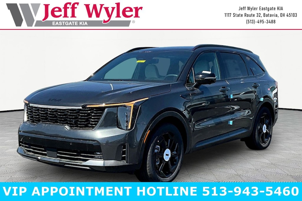 Priced below KBB Fair Purchase Price! Interstellar Gray 2026 Kia Sorento Hybrid X-Line SX Prestige 1.6L Turbo GDI 4-Cylinder AWD 6-Speed Automatic 32/35 City/Highway MPG Jeff Wyler Eastgate Auto Mall is proud to offer this fantastic 2026 Kia Sorento Hybrid X-Line SX Prestige in Interstellar Gray. Well equipped with: 12 Speakers, 3rd row seats: split-bench, 4-Wheel Disc Brakes, ABS brakes, Air Conditioning, All Weather Floor Mats, Alloy wheels, AM/FM radio: SiriusXM, Apple CarPlay & Android Auto, Auto High-beam Headlights, Auto-dimming Rear-View mirror, Automatic temperature control, Brake assist, Bumpers: body-color, Delay-off headlights, Driver door bin, Driver vanity mirror, Dual front impact airbags, Dual front side impact airbags, Electronic Stability Control, Emergency communication system: 911 Connect, Exterior Parking Camera Rear, Four wheel independent suspension, Front anti-roll bar, Front Bucket Seats, Front Center Armrest, Front dual zone A/C, Front fog lights, Front reading lights, Fully automatic headlights, Garage door transmitter: HomeLink, Heated and Ventilated Front Bucket Seats, Heated door mirrors, Heated front seats, Heated rear seats, Heated steering wheel, Illuminated entry, Knee airbag, Leather steering wheel, Low tire pressure warning, Memory seat, Navigation System, Occupant sensing airbag, Outside temperature display, Overhead airbag, Overhead console, Panic alarm, Passenger door bin, Passenger vanity mirror, Perforated Genuine Leather Seat Trim, Power door mirrors, Power driver seat, Power Liftgate, Power moonroof, Power passenger seat, Power steering, Power windows, Radio data system, Radio: AM/FM/SiriusXM Audio System, Rain sensing wipers, Rear anti-roll bar, Rear reading lights, Rear side impact airbag, Rear window defroster, Rear window wiper, Remote keyless entry, Security system, Speed control, Speed-sensing steering, Split folding rear seat, Spoiler, Steering wheel mounted audio controls, Tachometer, Telescoping steering wheel, Tilt steering wheel, Traction control, Trip computer, Turn signal indicator mirrors, Variably intermittent wipers, and Ventilated front seats. 32/35 City/Highway MPG Price includes: $2500 - Kia Customer Cash. Exp. 05/04/2026
