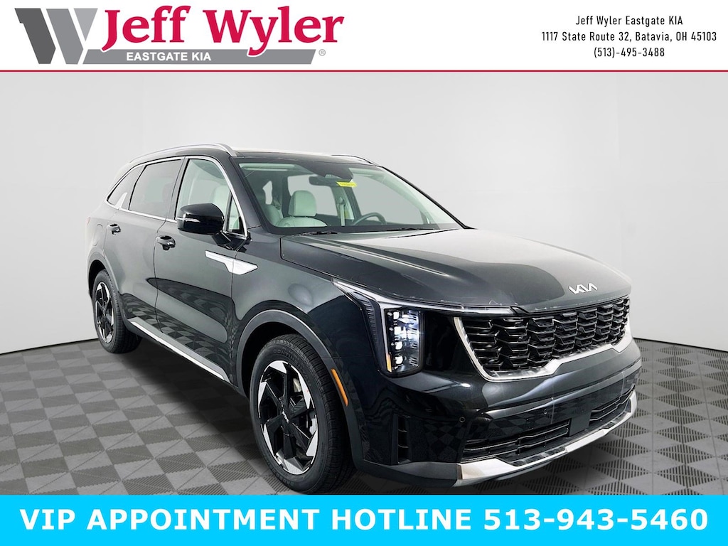 Priced below KBB Fair Purchase Price! Aurora Black Pearl 2026 Kia Sorento Plug-In Hybrid EX 1.6L I4 DGI Hybrid Turbocharged DOHC 16V LEV3-SULEV30 AWD 6-Speed Automatic Jeff Wyler Eastgate Auto Mall is very proud to offer this outstanding-looking 2026 Kia Sorento Plug-In Hybrid EX in Aurora Black Pearl. Well equipped with: EX Premium Package (2nd Row Captain's Chairs, LED Interior Lighting, Power Sunroof with Power Sunshade, and Radio: AM/FM Bose Premium Audio System), 3rd row seats: split-bench, 4-Wheel Disc Brakes, 6 Speakers, ABS brakes, Air Conditioning, All Weather Floor Mats, Alloy wheels, AM/FM radio: SiriusXM, Apple CarPlay & Android Auto, Auto High-beam Headlights, Auto-Dimming Mirror with HomeLink (PnP), Auto-dimming Rear-View mirror, Automatic temperature control, Brake assist, Bumpers: body-color, Carpeted Cargo Mat with Seatback Protection, Delay-off headlights, Driver door bin, Driver vanity mirror, Dual front impact airbags, Dual front side impact airbags, Electronic Stability Control, Emergency communication system: 911 Connect, Exterior Parking Camera Rear, Four wheel independent suspension, Front anti-roll bar, Front Bucket Seats, Front Center Armrest, Front dual zone A/C, Front fog lights, Front reading lights, Fully automatic headlights, Heated door mirrors, Heated Front Bucket Seats, Heated front seats, Illuminated entry, Knee airbag, Leather steering wheel, Low tire pressure warning, Navigation System, Occupant sensing airbag, Outside temperature display, Overhead airbag, Overhead console, Panic alarm, Passenger door bin, Passenger vanity mirror, Power door mirrors, Power driver seat, Power Liftgate, Power passenger seat, Power steering, Power windows, Radio data system, Radio: AM/FM/SiriusXM Audio System, Rear anti-roll bar, Rear reading lights, Rear seat center armrest, Rear side impact airbag, Rear window defroster, Rear window wiper, Remote keyless entry, Security system, Speed control, Speed-sensing steering, Split folding rear seat, Spoiler, Steering wheel mounted audio controls, SynTex Artificial Leather Seat Trim, Tachometer, Telescoping steering wheel, Tilt steering wheel, Traction control, Trip computer, Turn signal indicator mirrors, Variably intermittent wipers, and Wheels: 19" Machine-Finished Aero Alloy. Price includes: $3500 - Kia Customer Cash. Exp. 05/04/2026